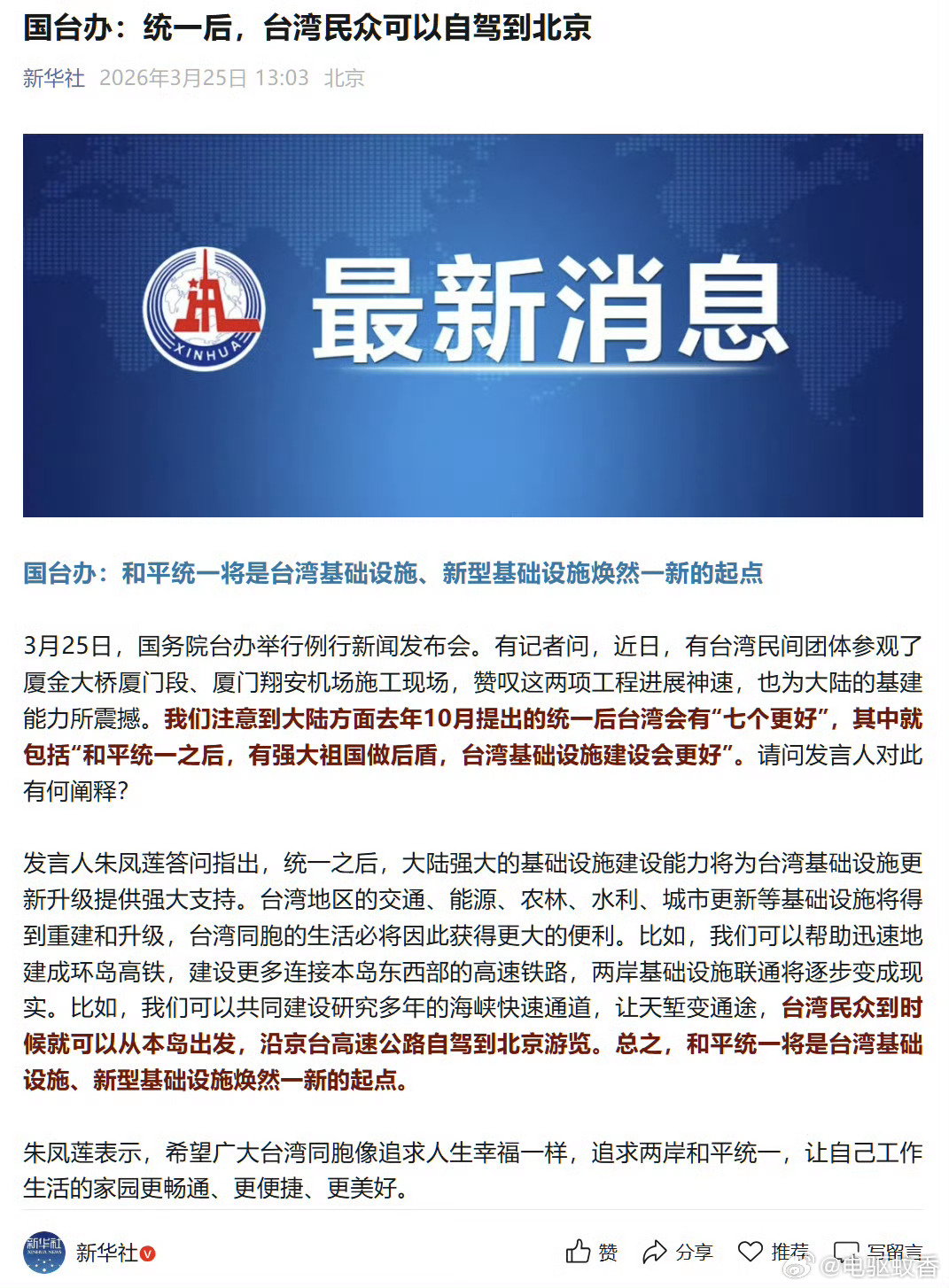刚才看霸天说以后可以策划自驾去台北,查了查我这过去1800公里,跑快点24小时能到金门统一后台湾民众可以自驾直达北京和平统一后大陆可帮台湾建环岛高铁