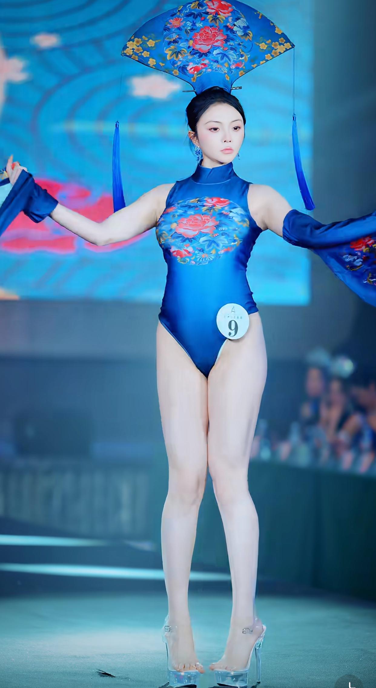 也是奇了怪了,怎么只要是选美都要穿泳装呢? 看上去不伦不类的,而且感觉也不好看呀 现在倒好,不仅是泳装,还是奇奇怪怪的泳装,头上还顶个像旗头一样的东西 左看右看,都感觉这衣服很像以前《恶魔战士》里的女僵尸 你说它是旗袍吧,它又不是,你说它不是旗袍吧,它又有点像,所以这衣服到底是个啥?