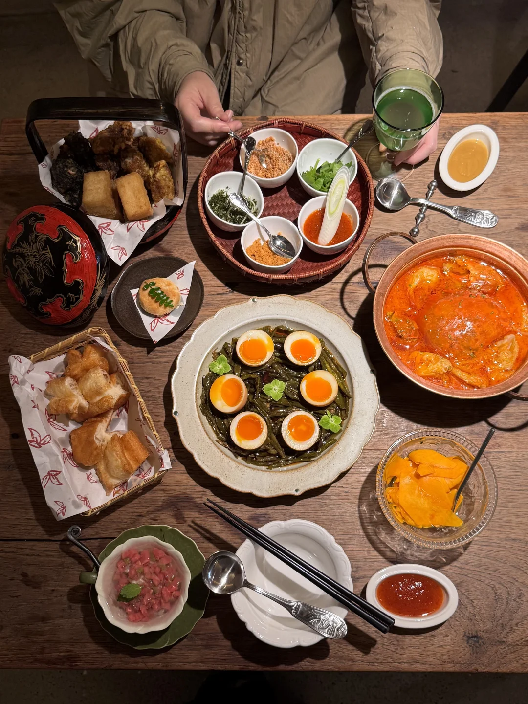古法海鲜沙茶锅、酸辣面线煮红膏蟹…我们点了满满一桌都没踩雷!姜母鸭干香入味,肉好紧致好好吃!海蛎煎蛋巨巨鲜又细嫩…每一道菜拎出来都很能打!已列入我和朋友的在杭必吃清单。。叫:红椛)