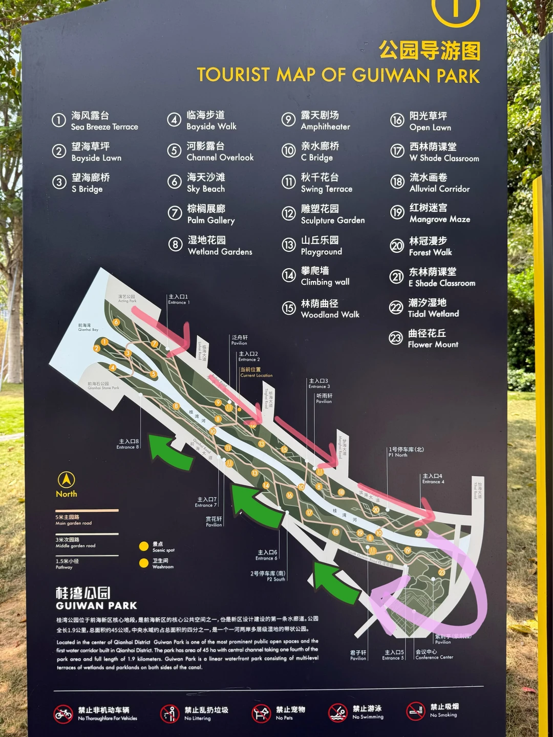🌳滨海文化公园 → 前海演艺公园 → 桂湾公园 → 前海石公园🌿