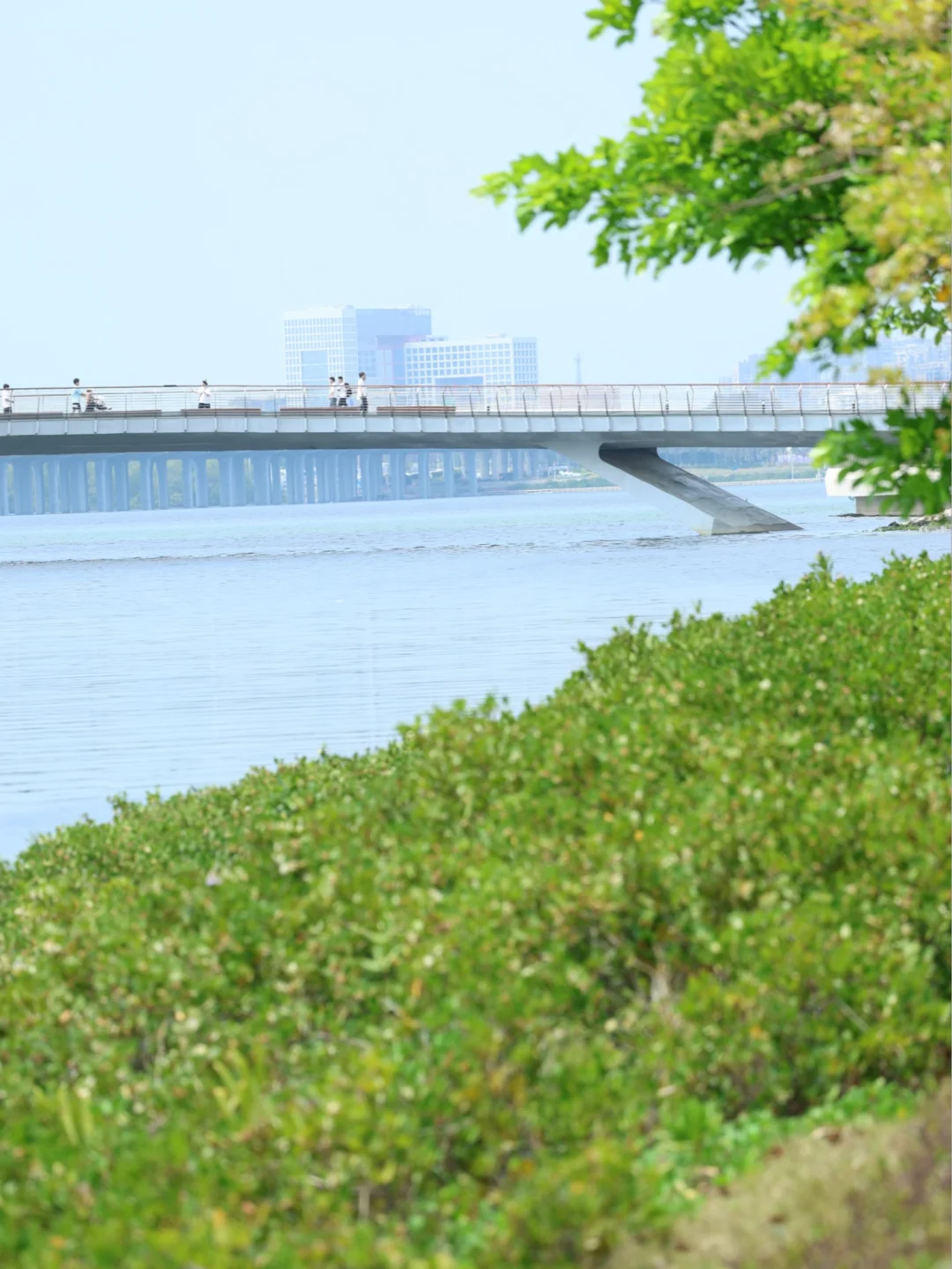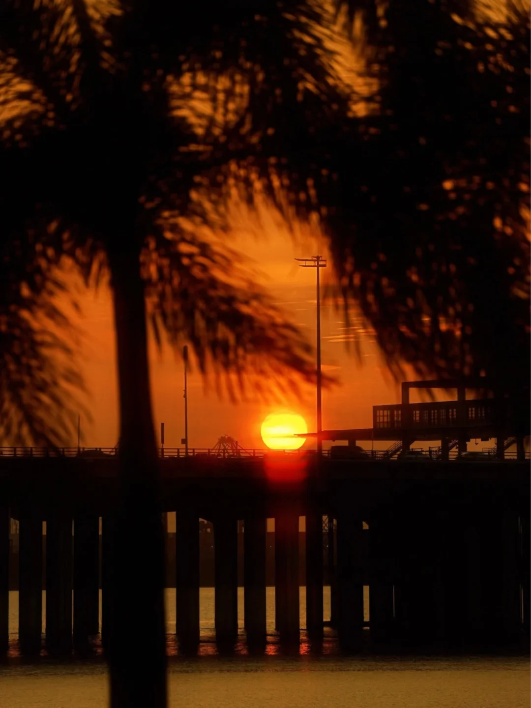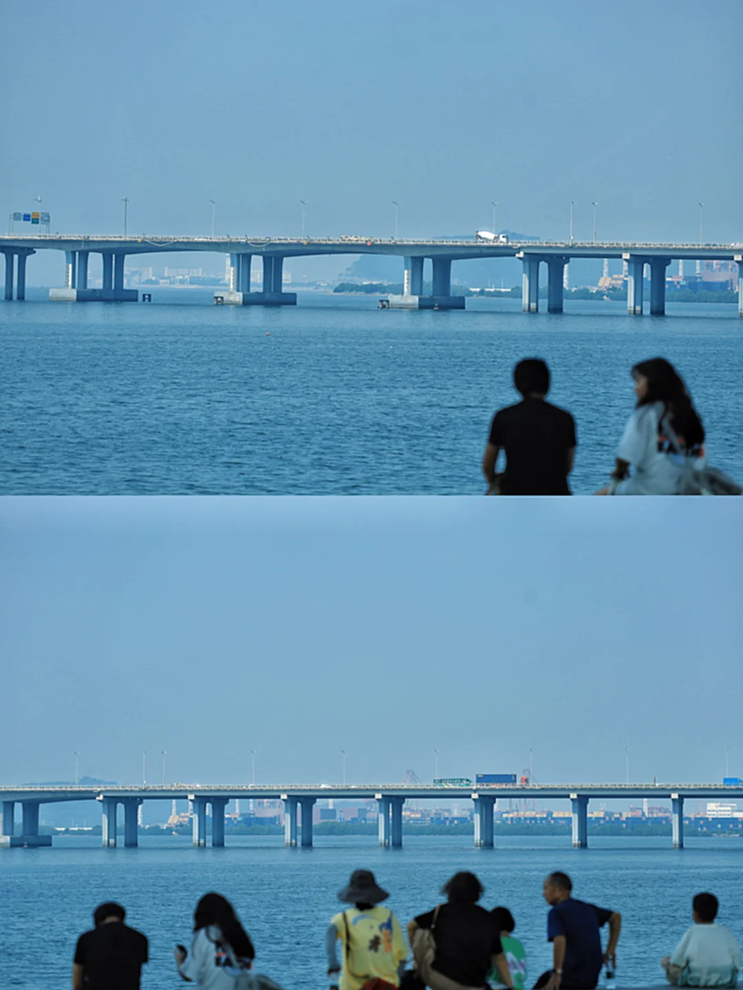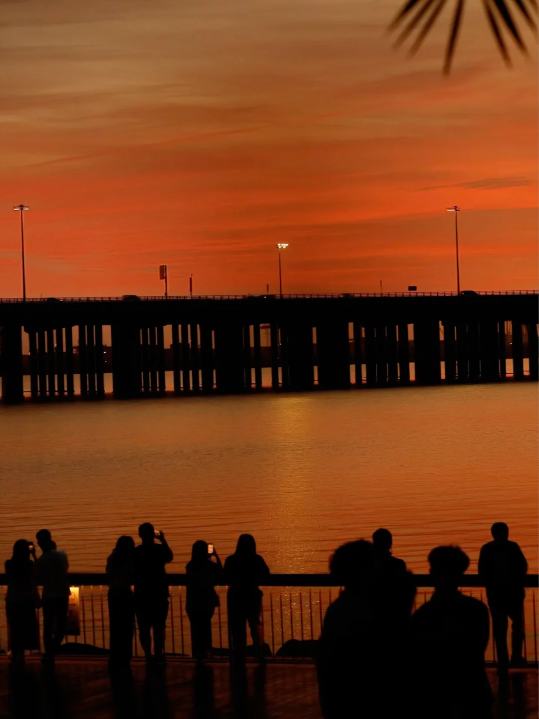 躺在草地上看那颗“蛋黄”慢慢落在海上天桥后面