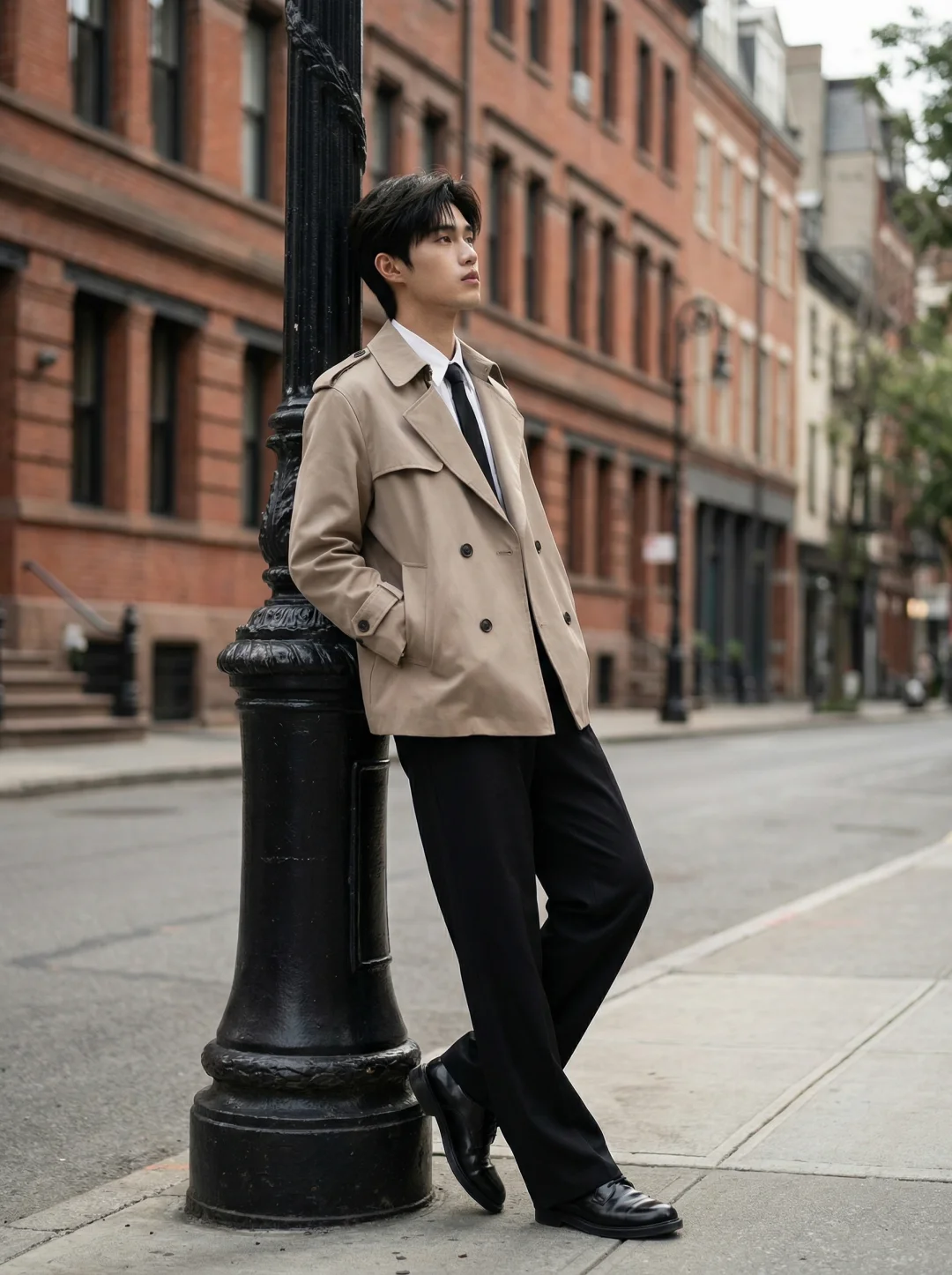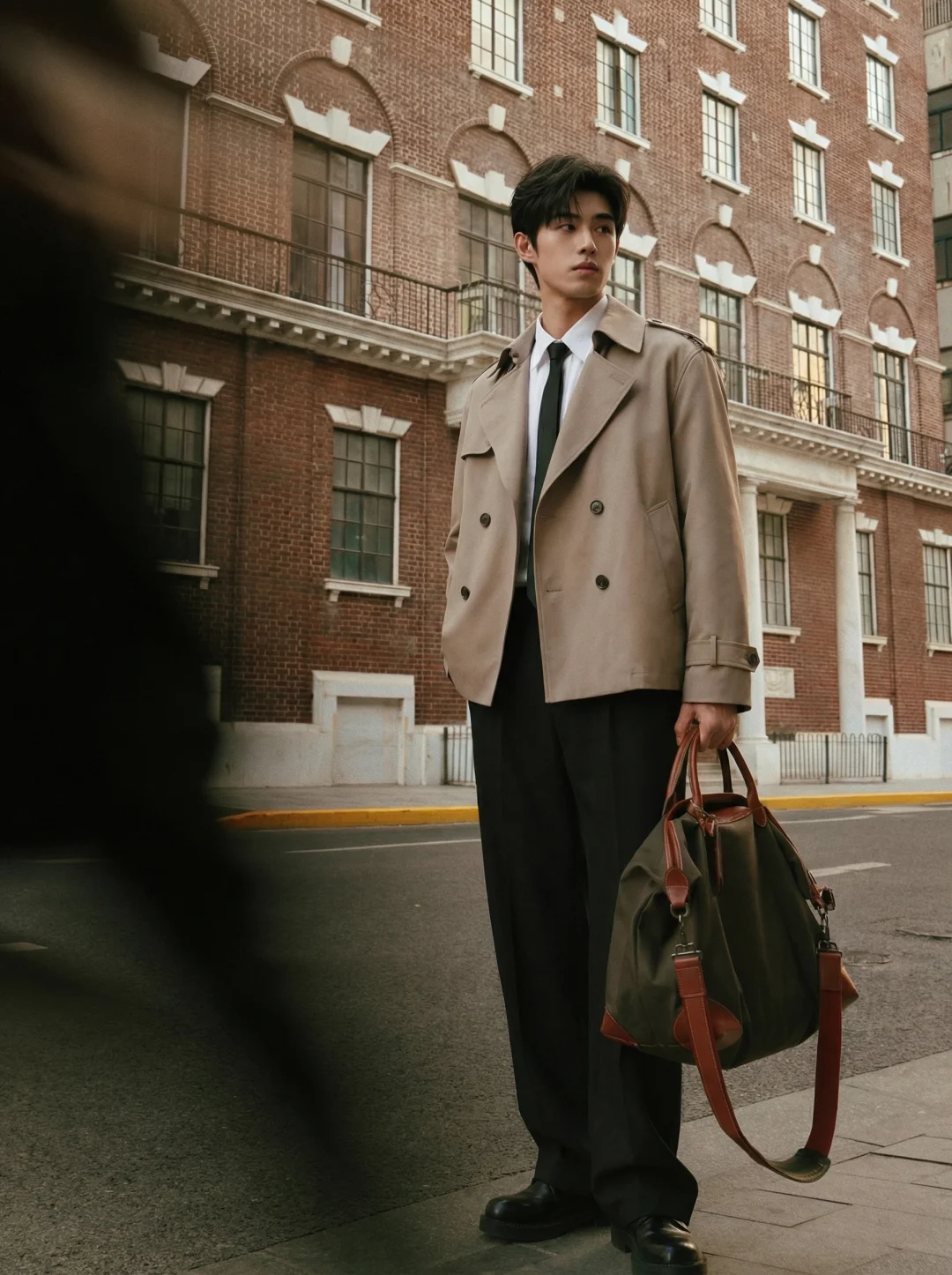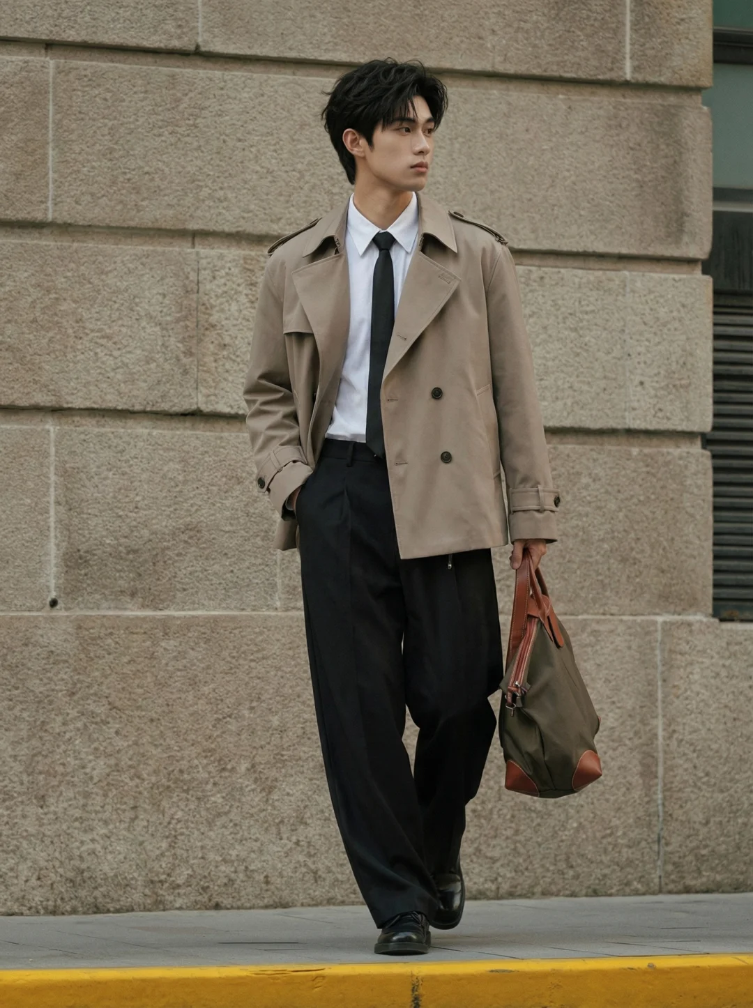 每次换季站在衣柜前都在头疼?长款大衣压身高,随便套件外套又显得太随意🧥 重塑比例,告别臃肿 长风衣确实挑人,但这件短款双排扣直接把视觉重心上移。搭配这件垂坠感极佳的黑色休闲裤,不仅优化了上下身比例,显高显挺拔,走在街上自带一种从容的松弛感。👔 拿捏都市高智感 内搭超细旦纤维白衬衫系上黑领带,摒弃了刻板与沉闷。干净利落的剪裁和考究的面料质感,透出一种不费力的“高智感”与精英气场,懂行的自然懂这种克制的高级。💼 无缝切换生活场景 不管是拎着复古帆布包穿梭在老建筑旁赶赴晨会,还是下班后随性的街头漫步,这套Look都能让你保持体面。不用每天纠结怎么搭,这一套直接照抄,省时又出片。