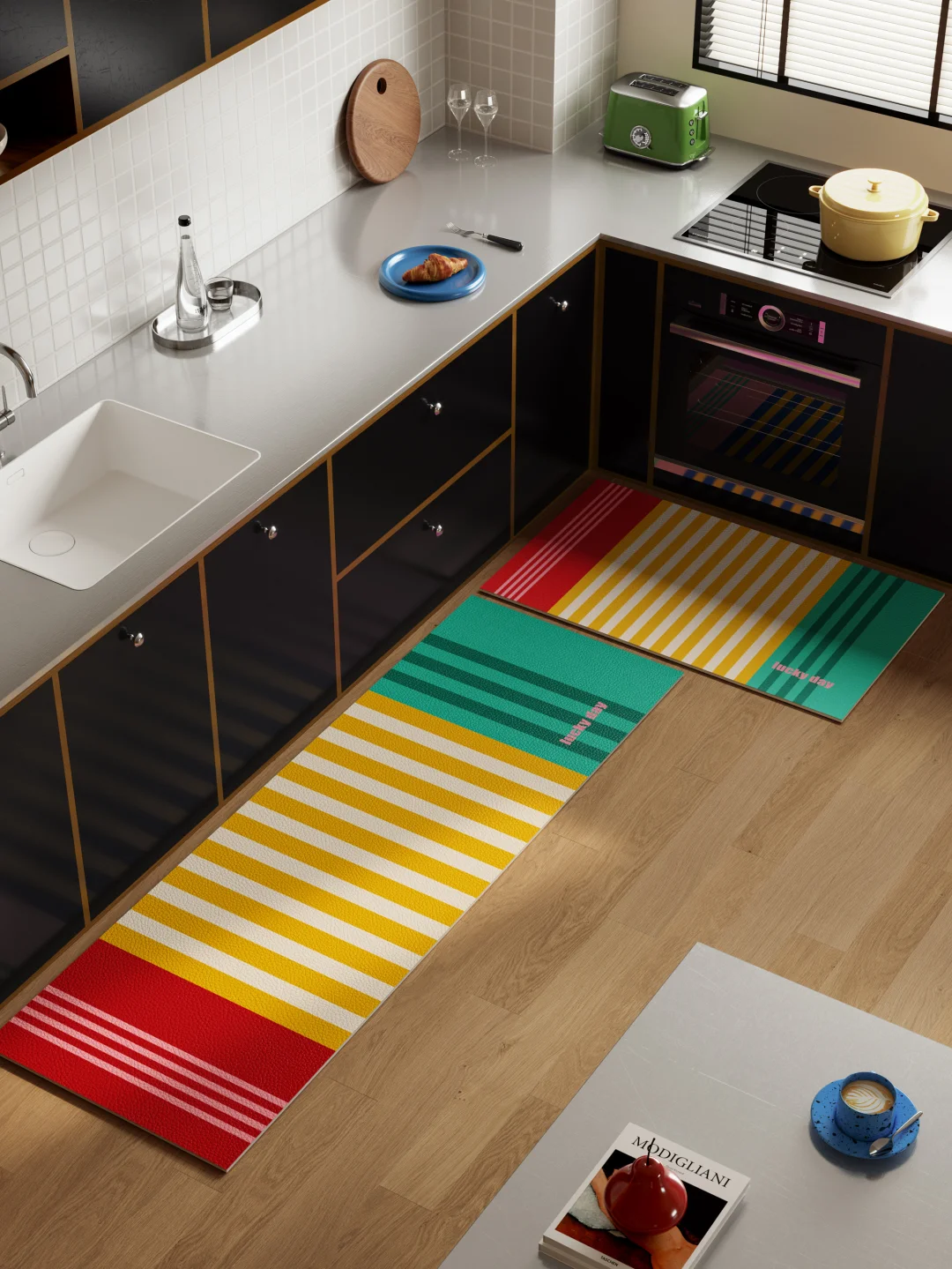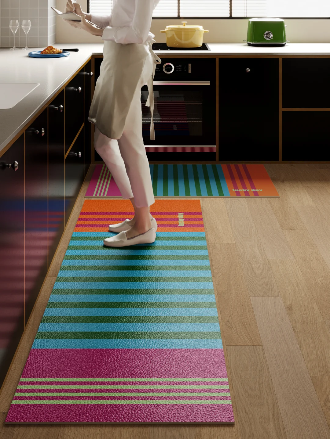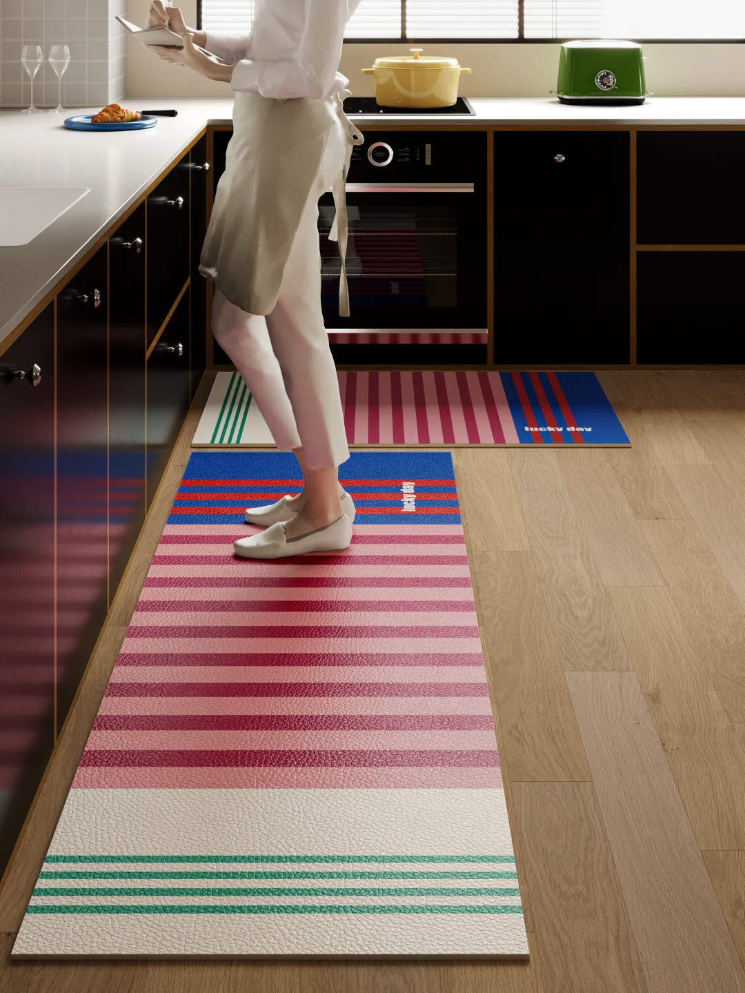 高饱和撞色条纹一眼吸睛 粉紫基底 + 蓝黄撞色 复古又跳脱 边缘薄荷绿细条纹点睛之笔 包豪斯线条感, 简约又充满力量 色彩层次丰富 不杂乱不刺眼 点亮沉闷厨房氛围感直接拉满✨ 包豪斯多巴胺混搭风厨房地垫五颜六色的家我的理想厨房色彩斑斓的家理想中的厨房家居色彩灵感厨房小角落打开厨房想象力氛围感厨房我家的厨房长这样厨房新潮流