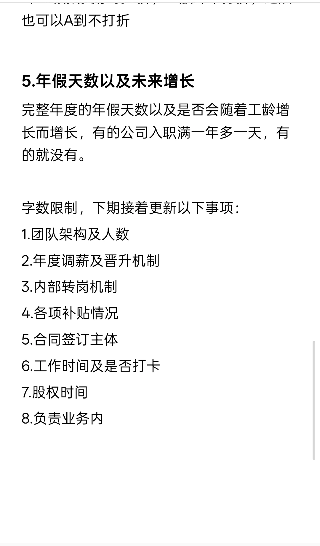 完整年度的年假天数以及是否会随着工龄增长而增长,有的公司入职满一年多一天,有的就没有。