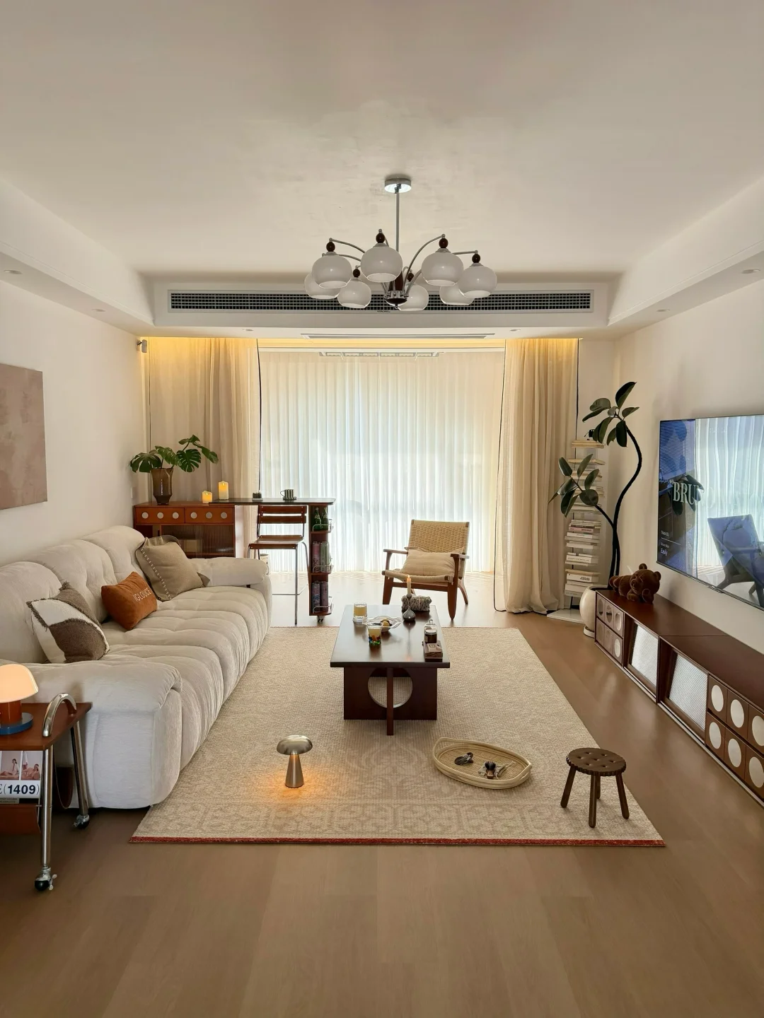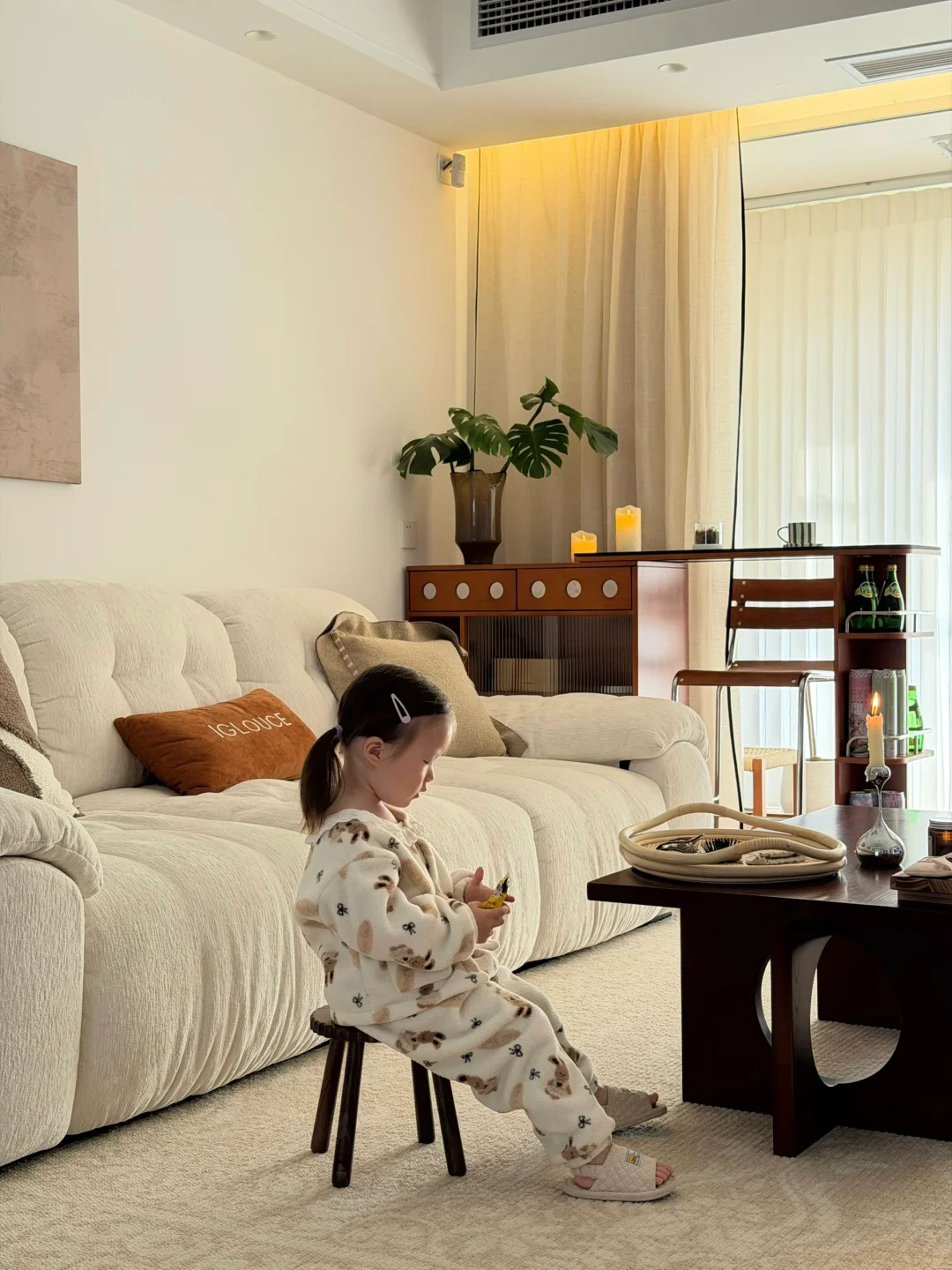 🏠我家坐标河南小县城 三室两厅两卫 竖厅户型 虽然高位买房 但也总归是有了自己的小家 客厅开间4米 是我们宅家待的最多的地方 直排沙发长2.8米 奶呼呼的很好看 中古电视柜长2.4米 杂七杂八都能收纳起来 一家三口住进这样的房子 让我真切的体会到家的归属感和幸福感~