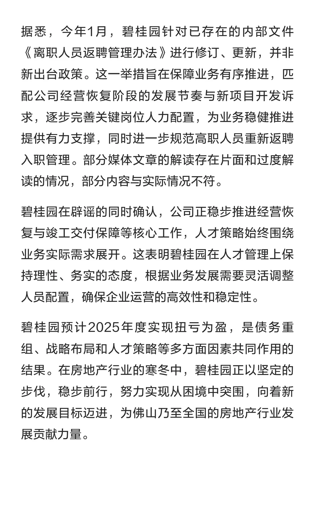 碧桂园2025年净利润人民币10亿元至22亿元