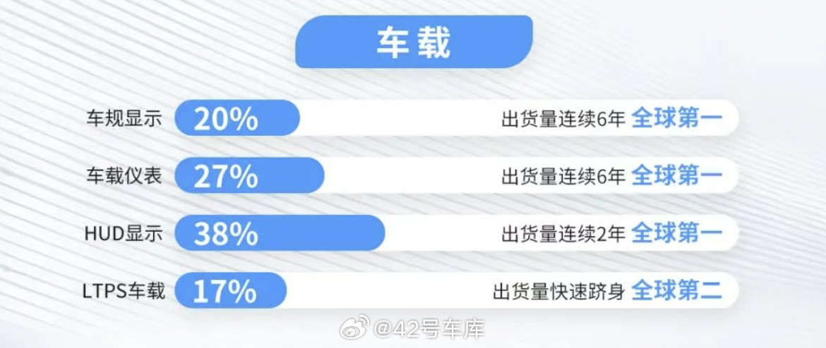 当然,在量产的产品上,今年在欧洲销售很火的新世代 BMW iX3 的六边形车机屏幕,供应商就是天马,这块屏幕的工艺相比四边要复杂很多。从市场表现上看,天马去年车规显示市场占有率 20%,车载仪表市场 27%,HUD 市场占 38%,LTPS 车载占 17%,天马的屏幕在汽车领域已经是非常重要的角色了。