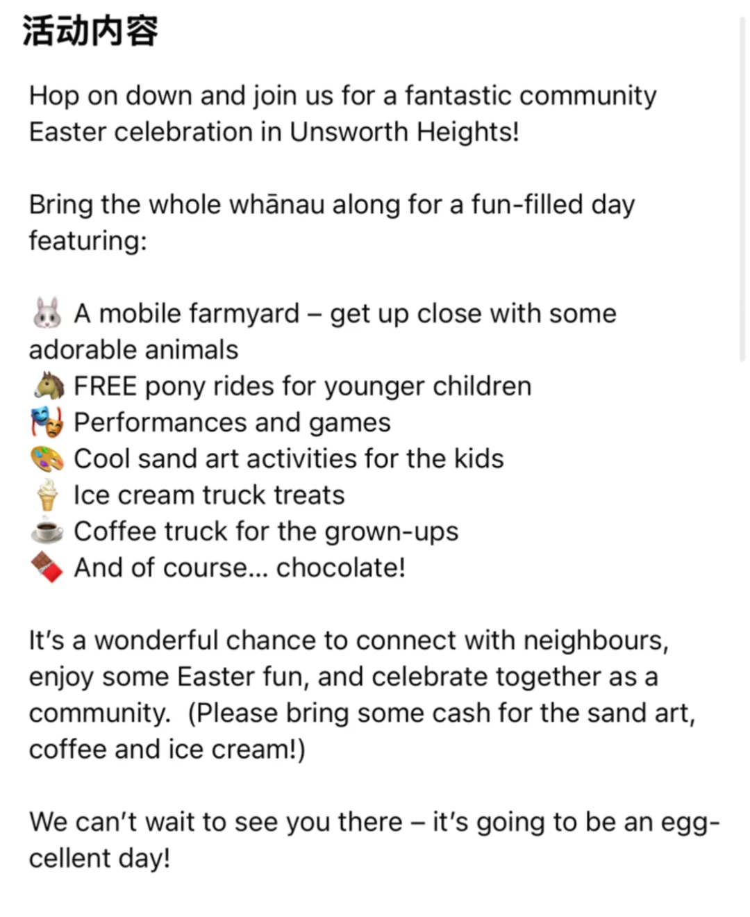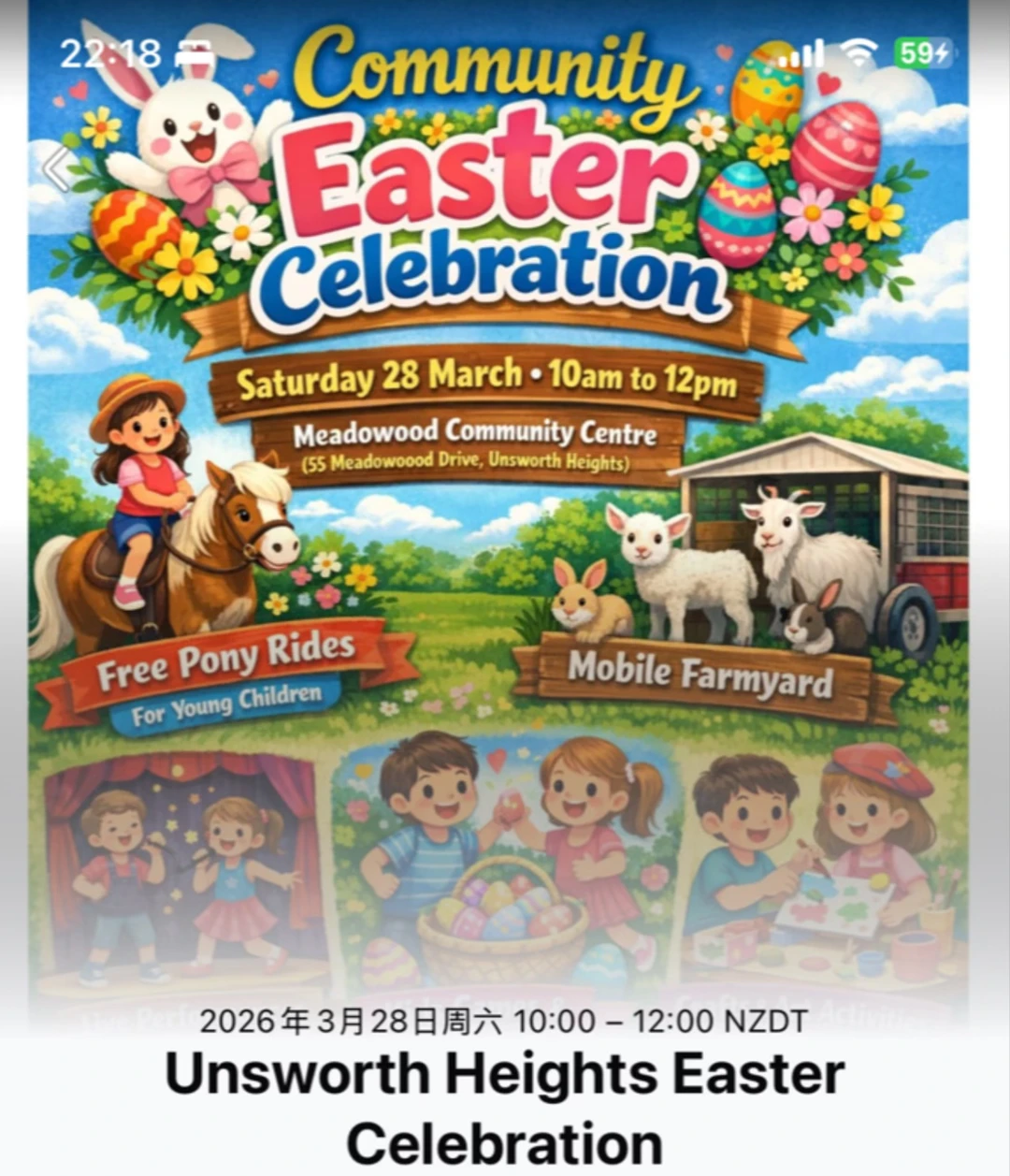 📍活动地点:Meadowood Community Centre(55 Meadowood Drive, Unsworth Heights, Auckland)