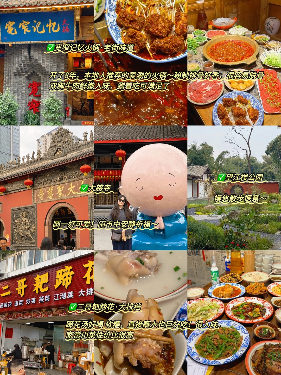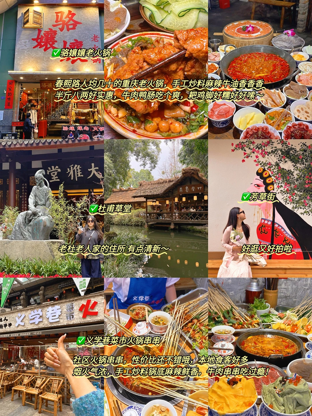✅逛景点:成都博物馆、文殊院、杜甫草堂、武侯祠、锦里古街、大慈寺、青羊宫、东郊记忆、二仙桥公园、三星堆博物馆