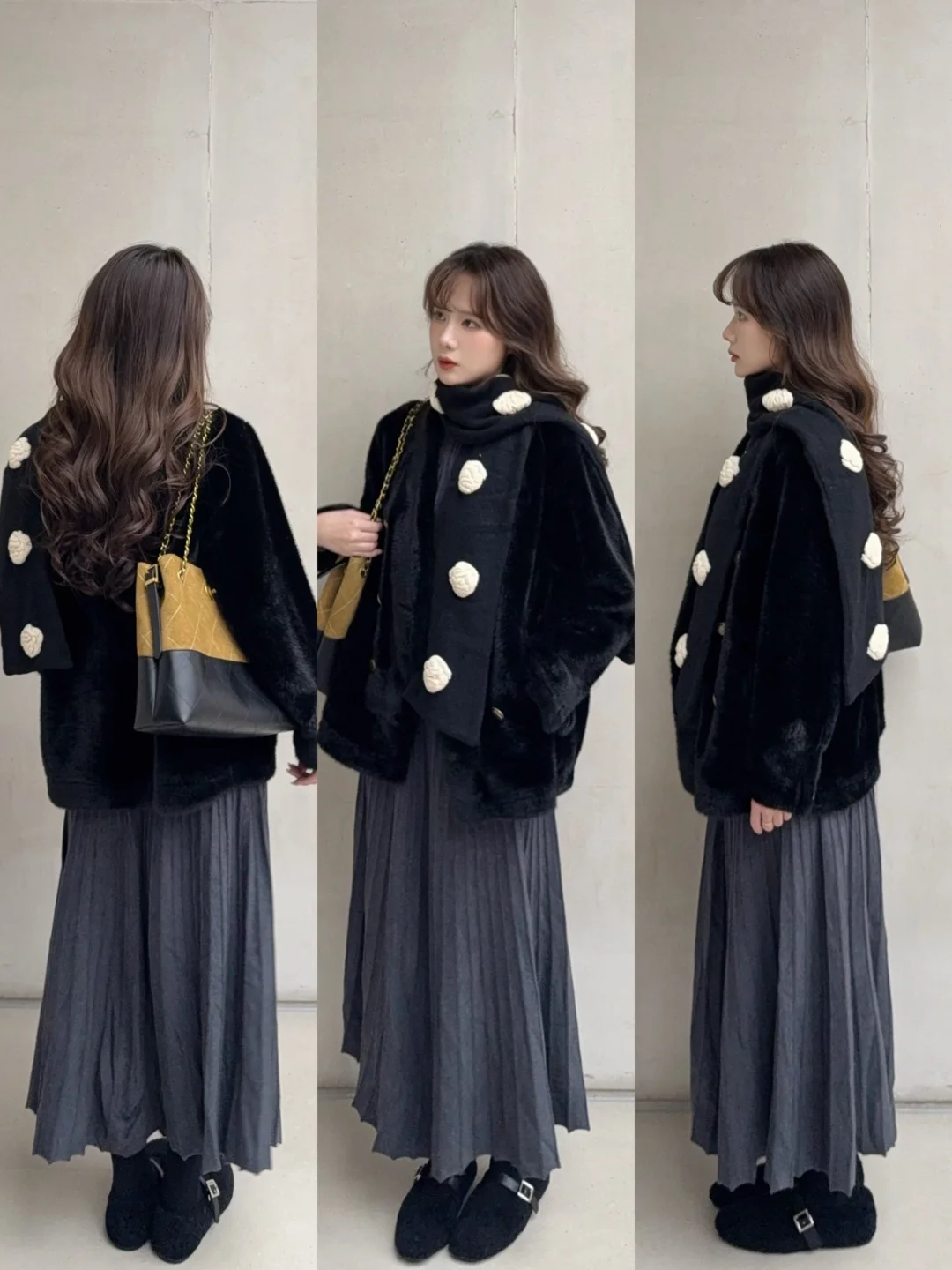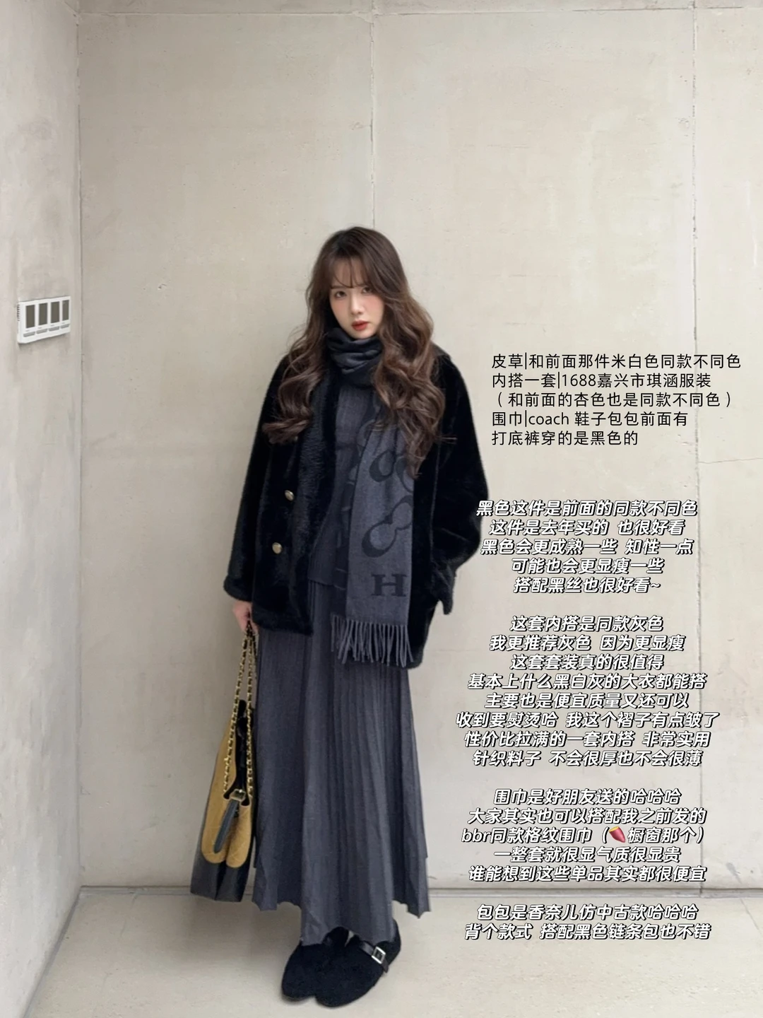有类似的黑色杏色白色皮草 都可以这样搭配