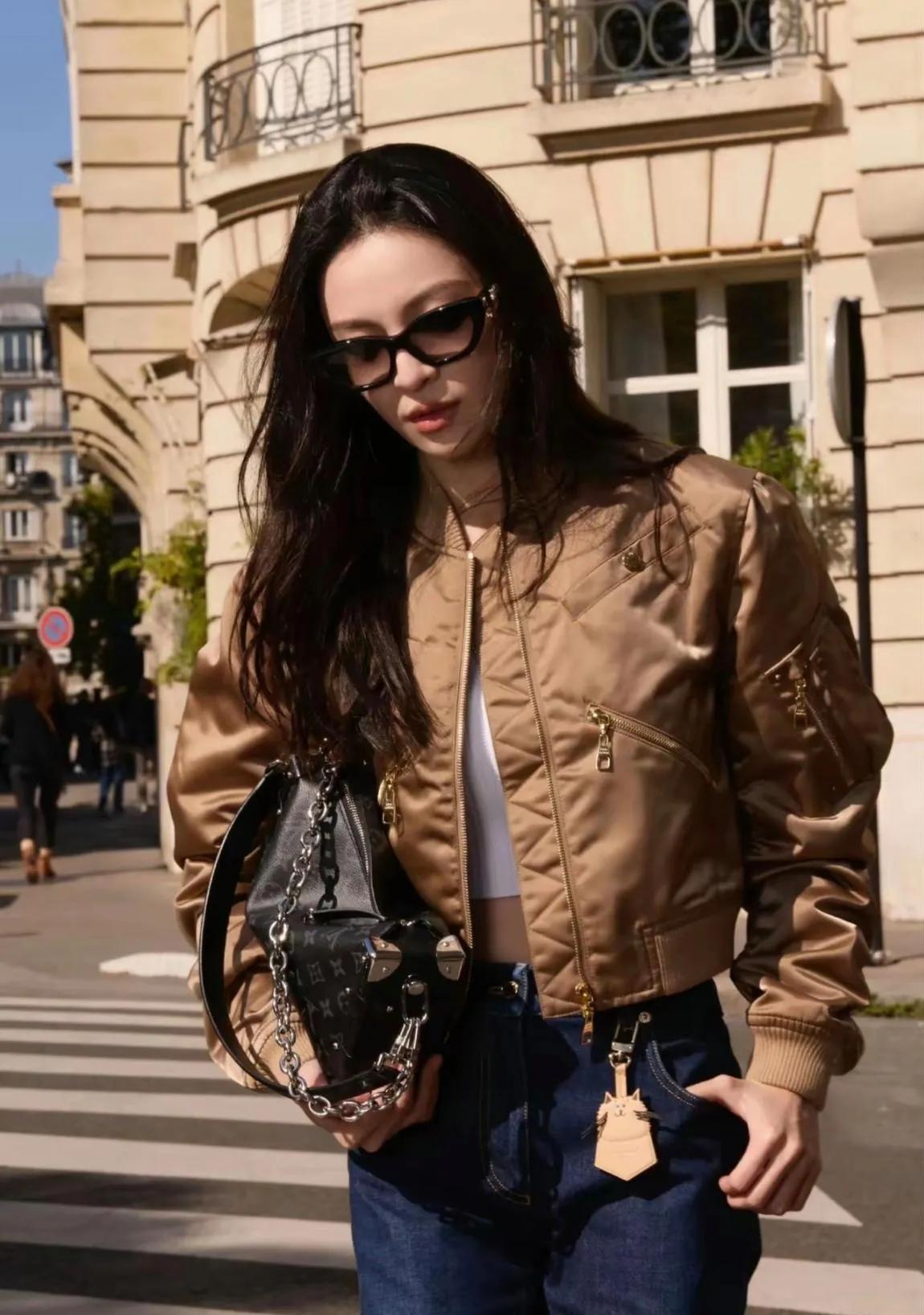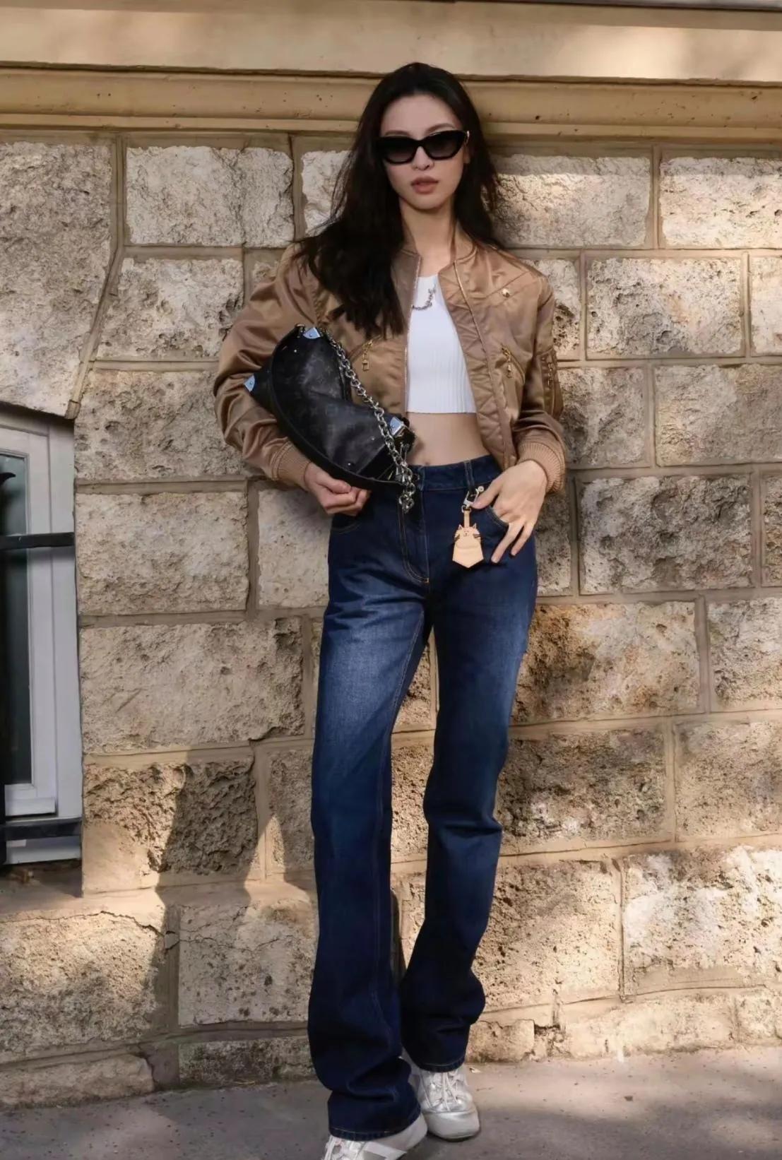 钟楚曦咖色棒球服造型封神 钟楚曦这一身也太会搭!咖色短款棒球服搭白色露脐装,内搭外穿超显身材✨ 复古直筒牛仔裤拉出三七分比例,又酷又飒,每一帧都是行走的时尚大片! 钟楚曦 钟楚曦私服 棒球服穿搭 早春穿搭