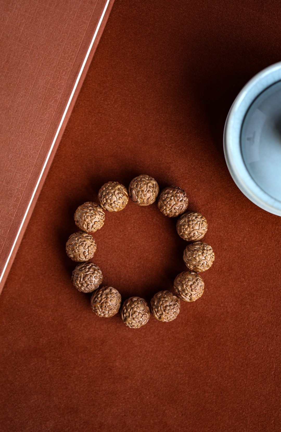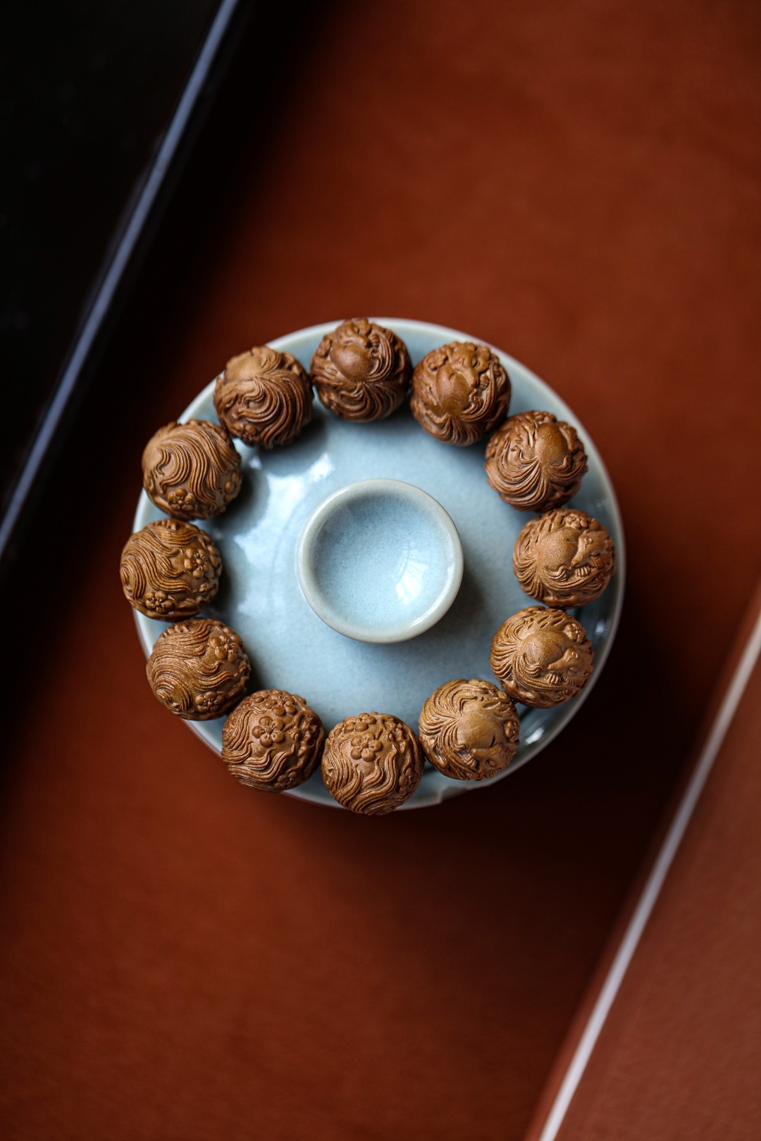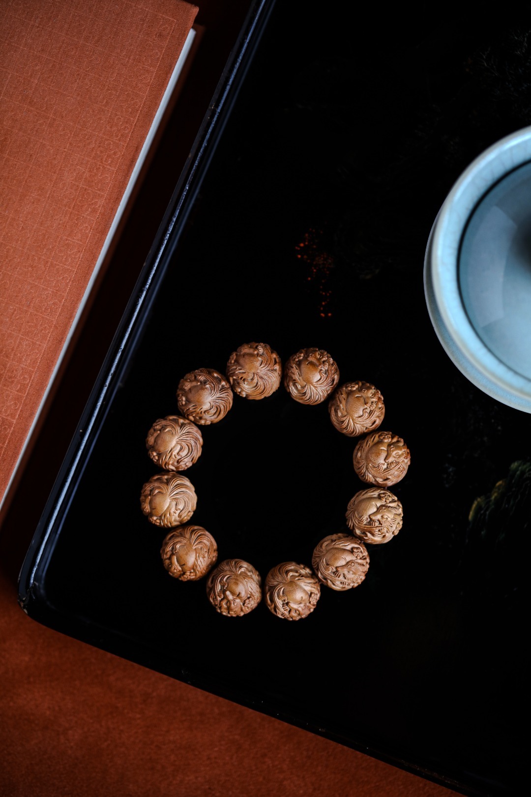 老山檀香【狐狸】20mm12颗手串手工雕琢,形态圆润饱满;狐狸呈抱球态,萌珑精致
