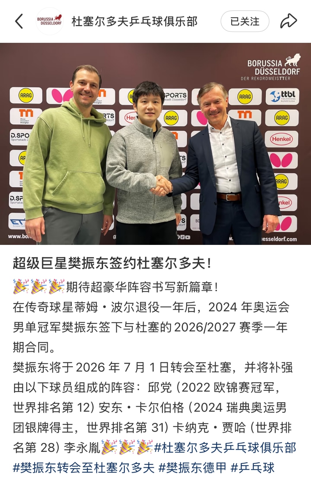 自加盟萨尔布吕肯以来再到转会杜塞尔多夫,樊振东用他绝对的实力和教养,还有独属于他