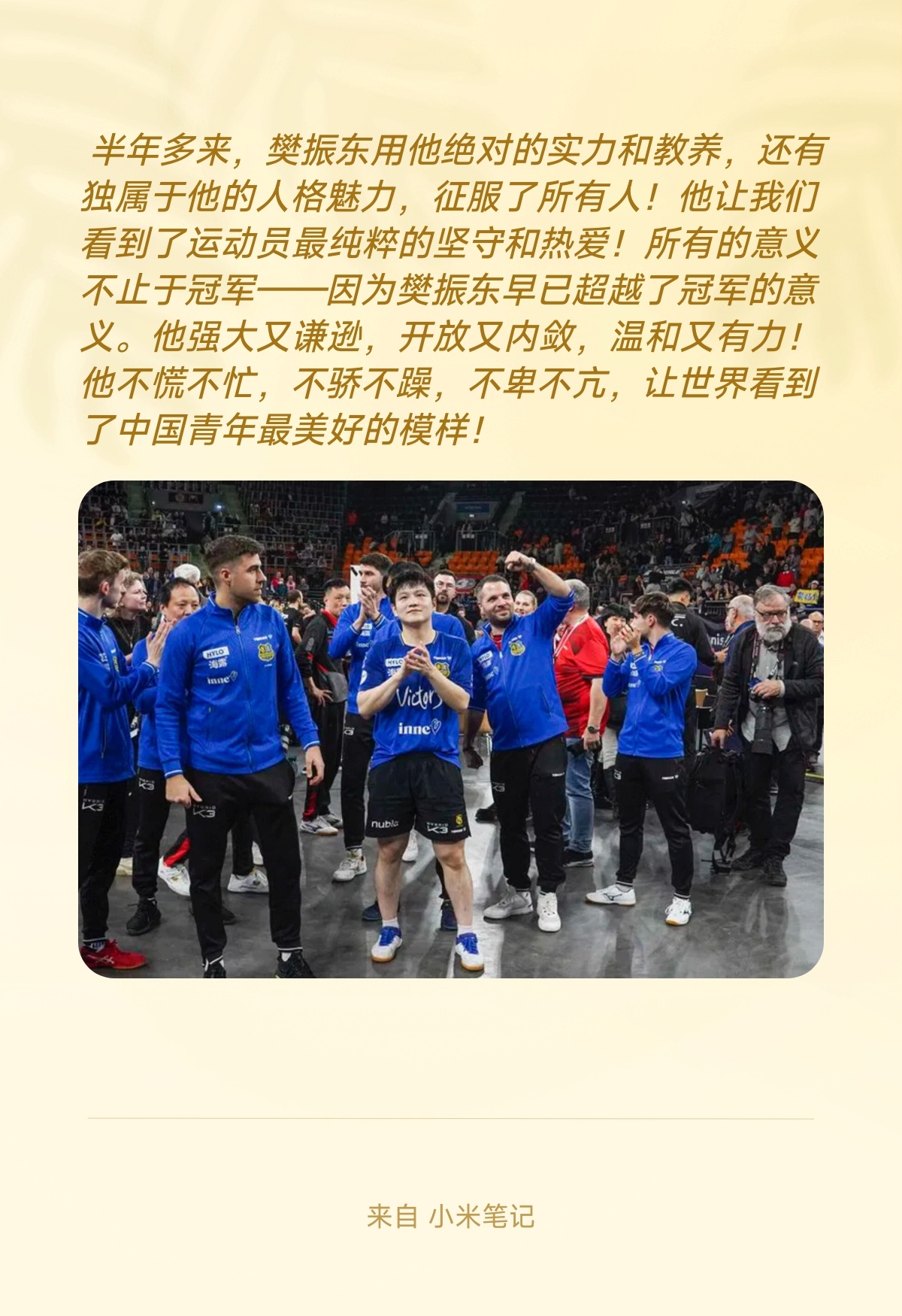 自加盟萨尔布吕肯以来再到转会杜塞尔多夫,樊振东用他绝对的实力和教养,还有独属于他的人格魅力,征服了所有人!他让我们看到了运动员最纯粹的坚守和热爱!也让世界看到了中国青年最美好的模样!