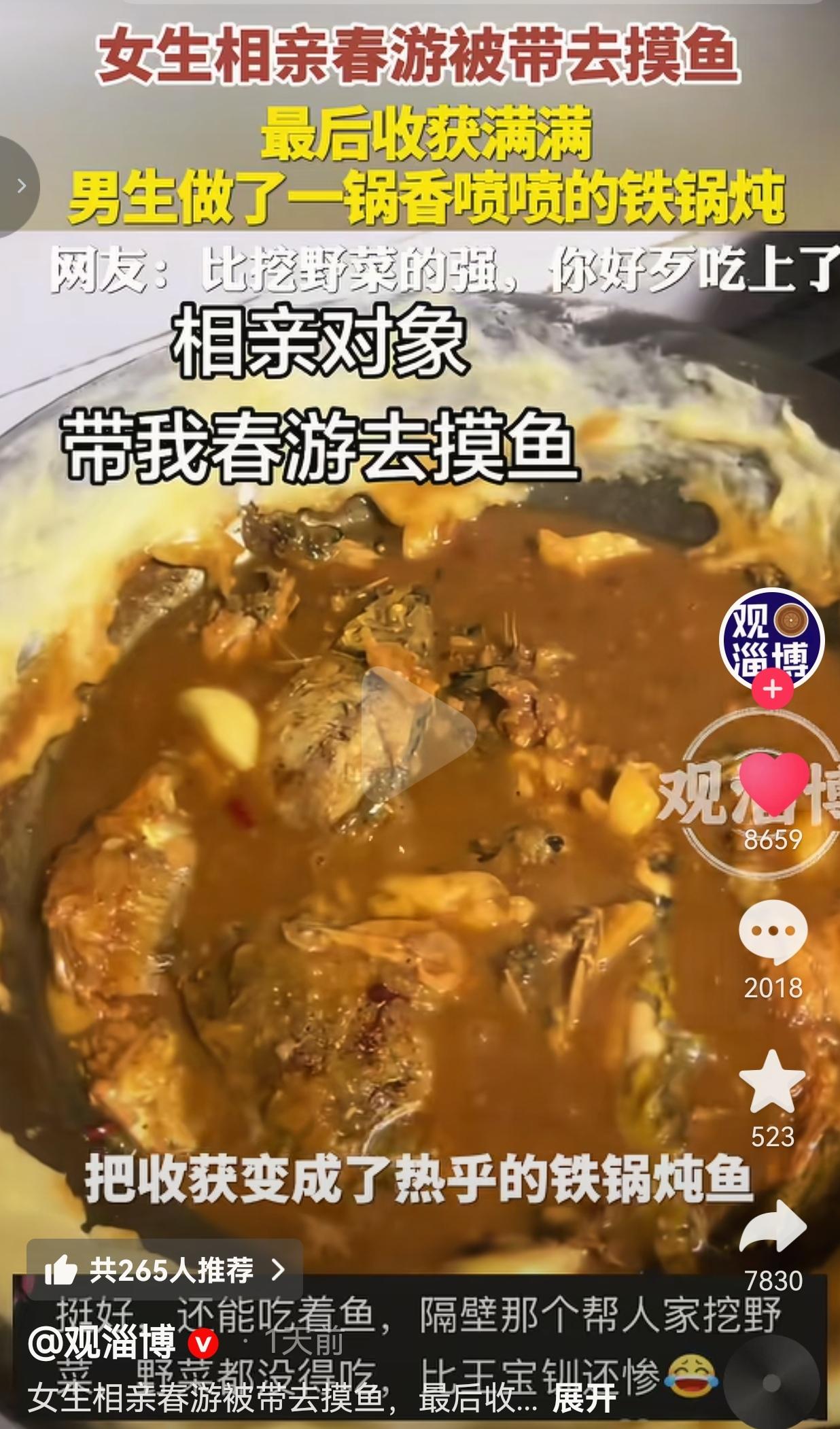 又是一场独特的相亲方式,真的笑死人了!安徽一姑娘被相亲对象带去郊外摸鱼,从一脸懵到最后抱着铁锅炖鱼狂炫,这剧情我能笑一年! 安徽一女生和男生相亲,本来以为是浪漫春游,结果被相亲对象直接拐到了郊外泥地里! 站在坑坑洼洼的河边,姑娘心里直打鼓:“相亲对象带我出来春游,我该怎么告诉他我想回家!” 结果男生二话不说,撸起袖子就往泥里冲,抄起网兜就开始摸鱼,浑身上下溅满了泥点子也不管,那股子实在劲儿直接给姑娘看愣了。 俩人蹲在泥里折腾半天,最后收获满满一大桶活蹦乱跳的鱼,男生拎着鱼就回家,架起铁锅炖了一锅热气腾腾的鱼,汤汁浓郁,鱼肉鲜嫩,姑娘直接从“想回家”变成“炫饭人”,吃得满嘴流油。 没有高档餐厅的拘谨,没有逛街看电影的老套路,这种带着一身泥、亲手捞鱼下锅的原生态相处,反而比那些精心包装的约会真实一百倍! 网友看到后评论说:“哈哈哈哈这比之前挖野菜的强太多了!好歹吃上热乎鱼了,隔壁挖野菜的连菜叶子都没捞着! 也有的网友说:“这种男生就算处不成对象,也能当朋友!实在!比那些只会画饼的强一万倍!” 还有的网友说:“没有套路的约会太舒服了!不用端着,不用找话题,摸鱼炖鱼多自在!” 也有的网友说:“别整那些虚的!能带你摸鱼还能给你炖鱼的,才是靠谱人!”  我真的要被这事儿笑疯又暖哭! 现在多少相亲全是套路:精心打扮、网红餐厅、尬聊到脚抠三室一厅,最后散场连对方爱吃啥都不知道! 反观这男生,不玩虚的,直接带你摸鱼炖鱼,浑身是泥也不装,这种接地气的真诚,比任何昂贵礼物都打动人! 别再说相亲要浪漫要精致了,能让你放下防备、吃得开心、笑得自在的相处,才是真的能过日子的人!那些只会画饼、装腔作势的,趁早靠边站!  我们总在追求“完美约会”,却忘了最打动人的从来不是包装出来的精致,而是藏在烟火气里的真诚。 这锅铁锅炖鱼,炖的不是鱼,是两个人卸下伪装后的自在,是不玩套路的真心。 别再被那些“仪式感”绑架了,能陪你摸鱼、给你做饭的人,才值得你托付真心。 相亲别玩虚的!能带你摸鱼炖鱼的人,比送你99朵玫瑰的更靠谱!  对此,你怎么看?