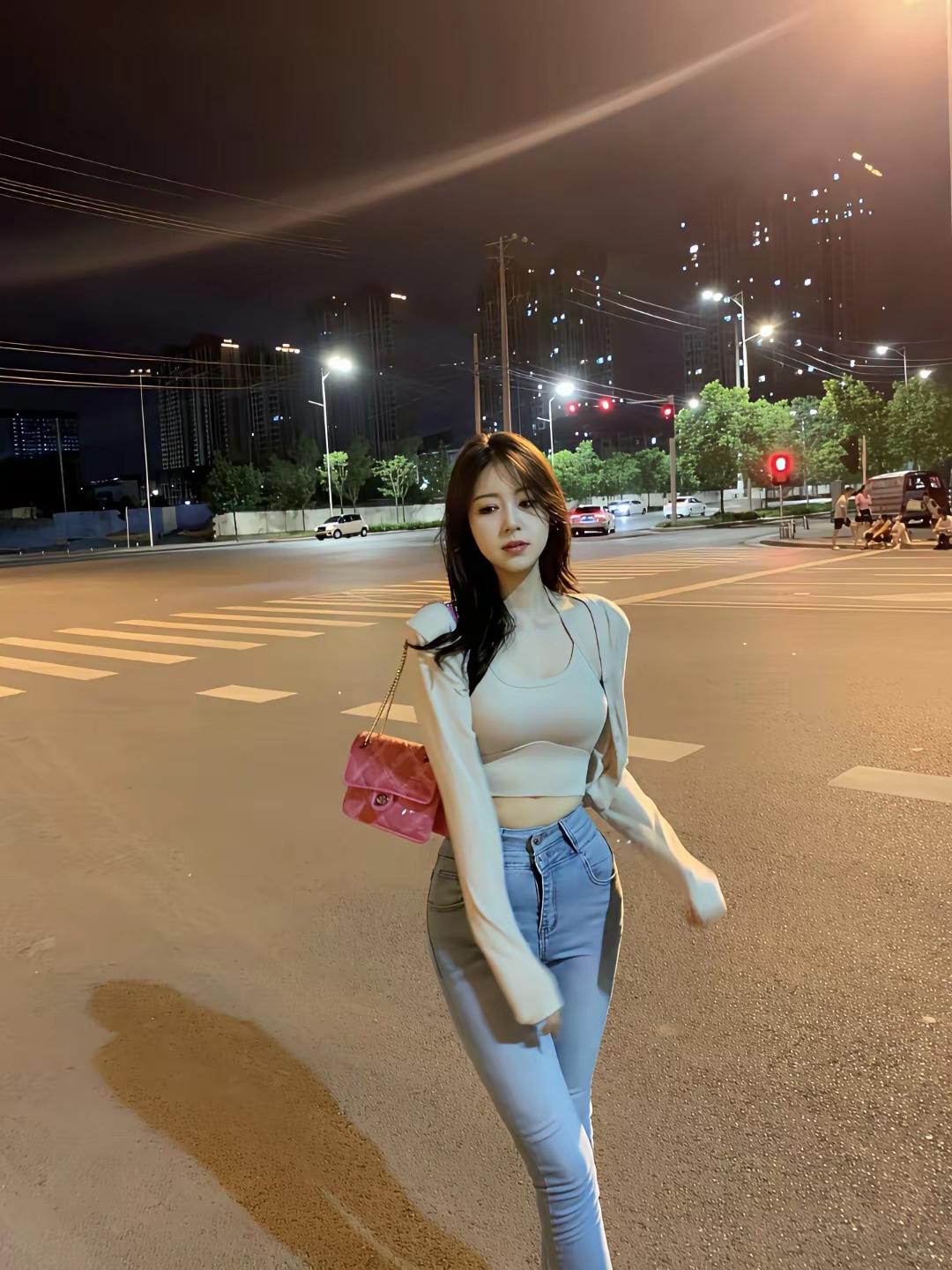 美女的美丽体现在何处呢?夜晚街拍,时尚穿搭,自信满满!美少女一枚