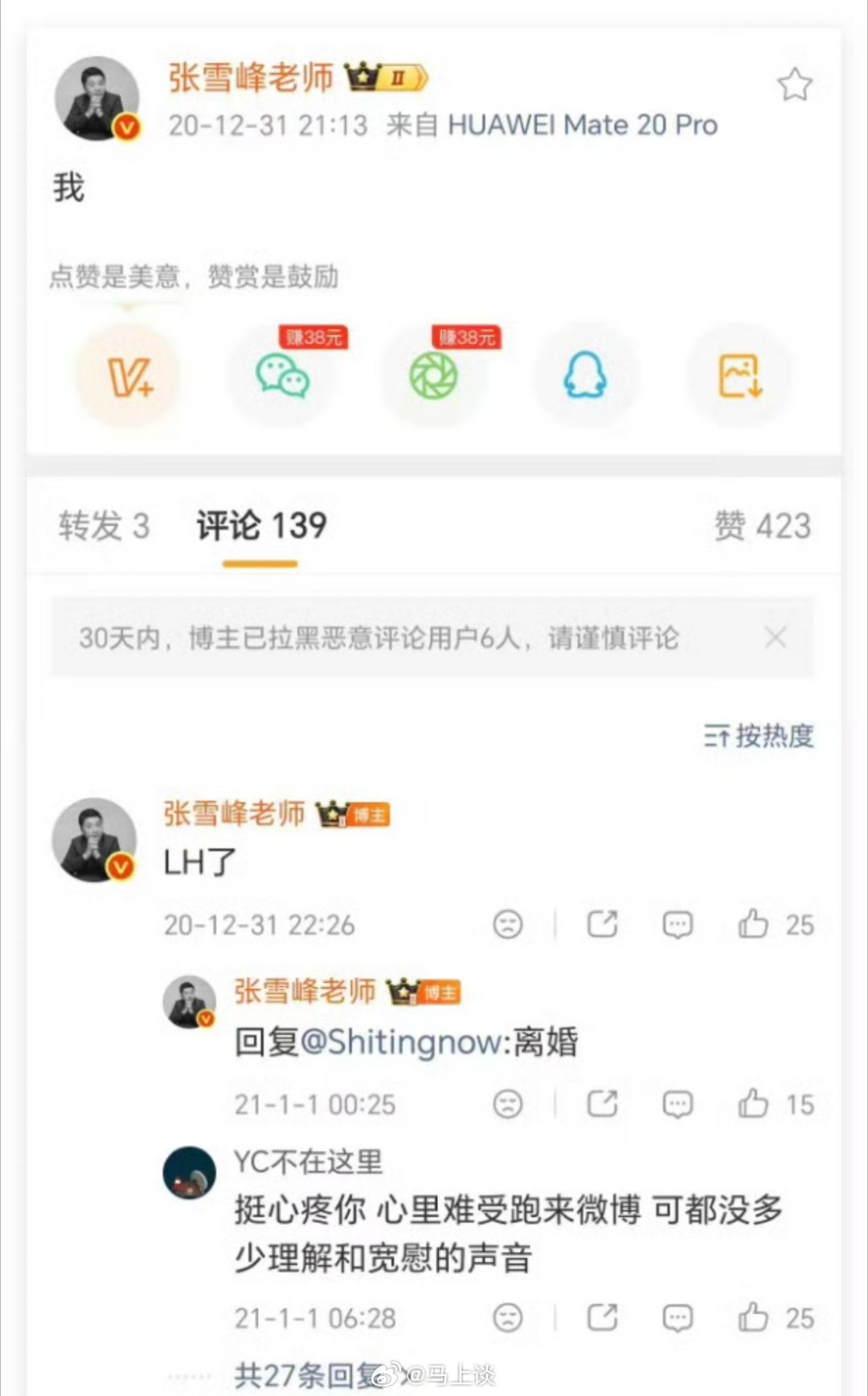 原来张雪峰20年底就说自己离婚了,所以前段时间媒体报道他出轨是什么鬼?