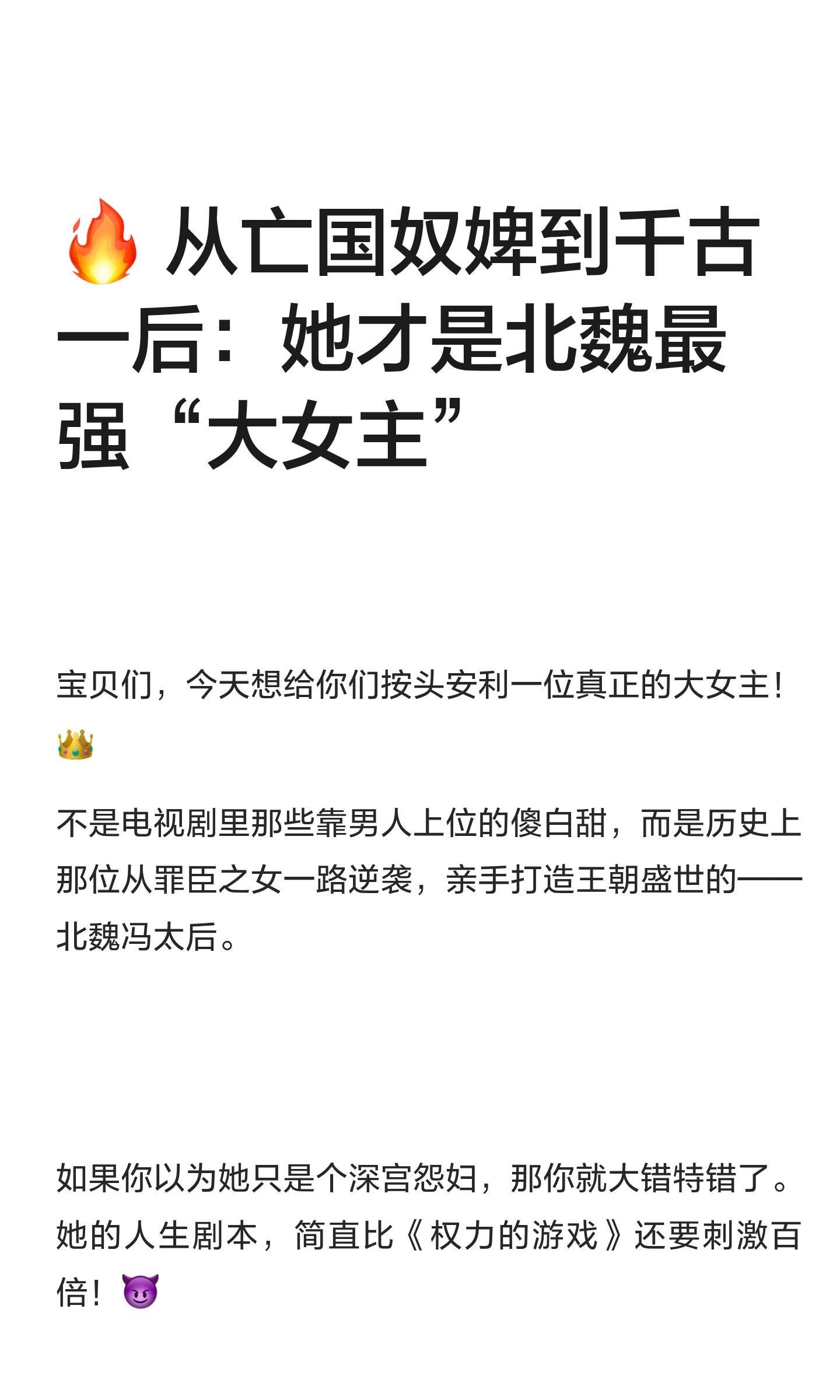 江山大同 安利江山大同里的冯太后,北魏最强大女主