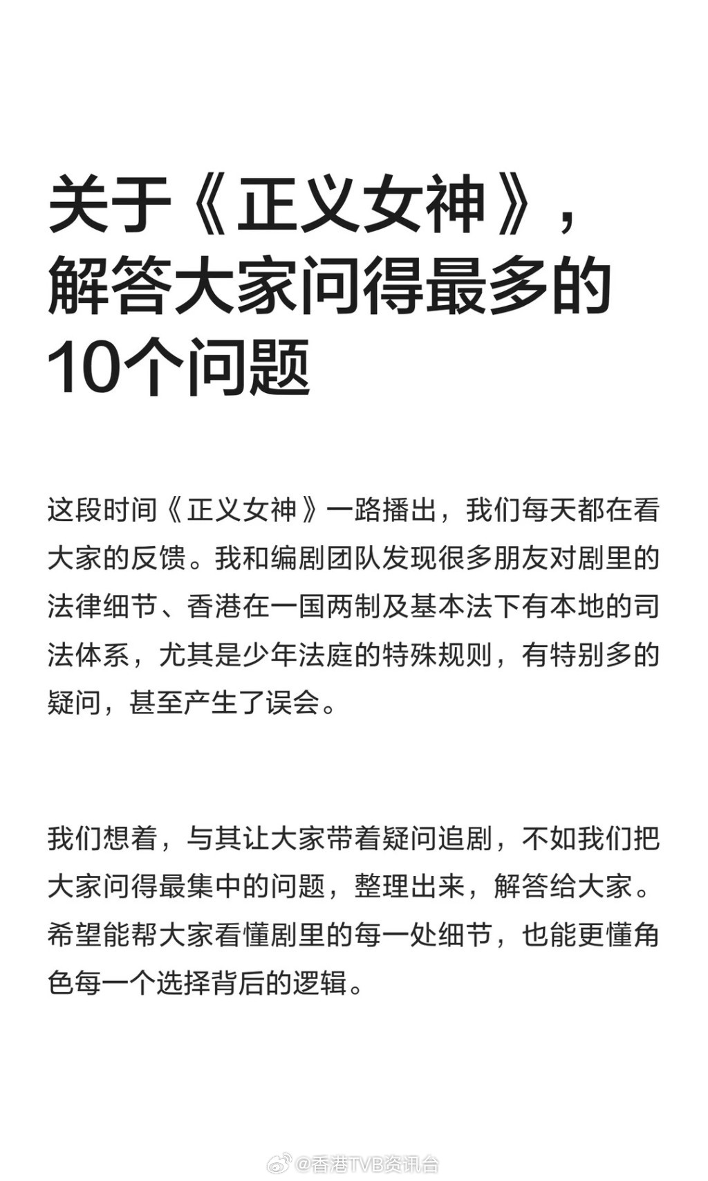 钟澍佳:《正义女神》缘起于《新闻女王》总监制钟澍佳日前在微博及小红书撰文,表示想和大家聊聊《正义女神》。他提到剧集的缘起要从《新闻女王》说起,当时团队在搜集《新闻女王2》素材时,看到世界各地多宗触目惊心的校园少年恶性犯罪案件,难以理解为何尚未长大的孩子会做出如此极端的行为。也正因这些真实憾事,他与编剧团队认为少年犯罪不应只是新闻剧的一个单元,值得独立做成一部完整作品,深入拆解探讨。自此团队开始筹备这部聚焦少年司法、守护少年成长的《正义女神》。