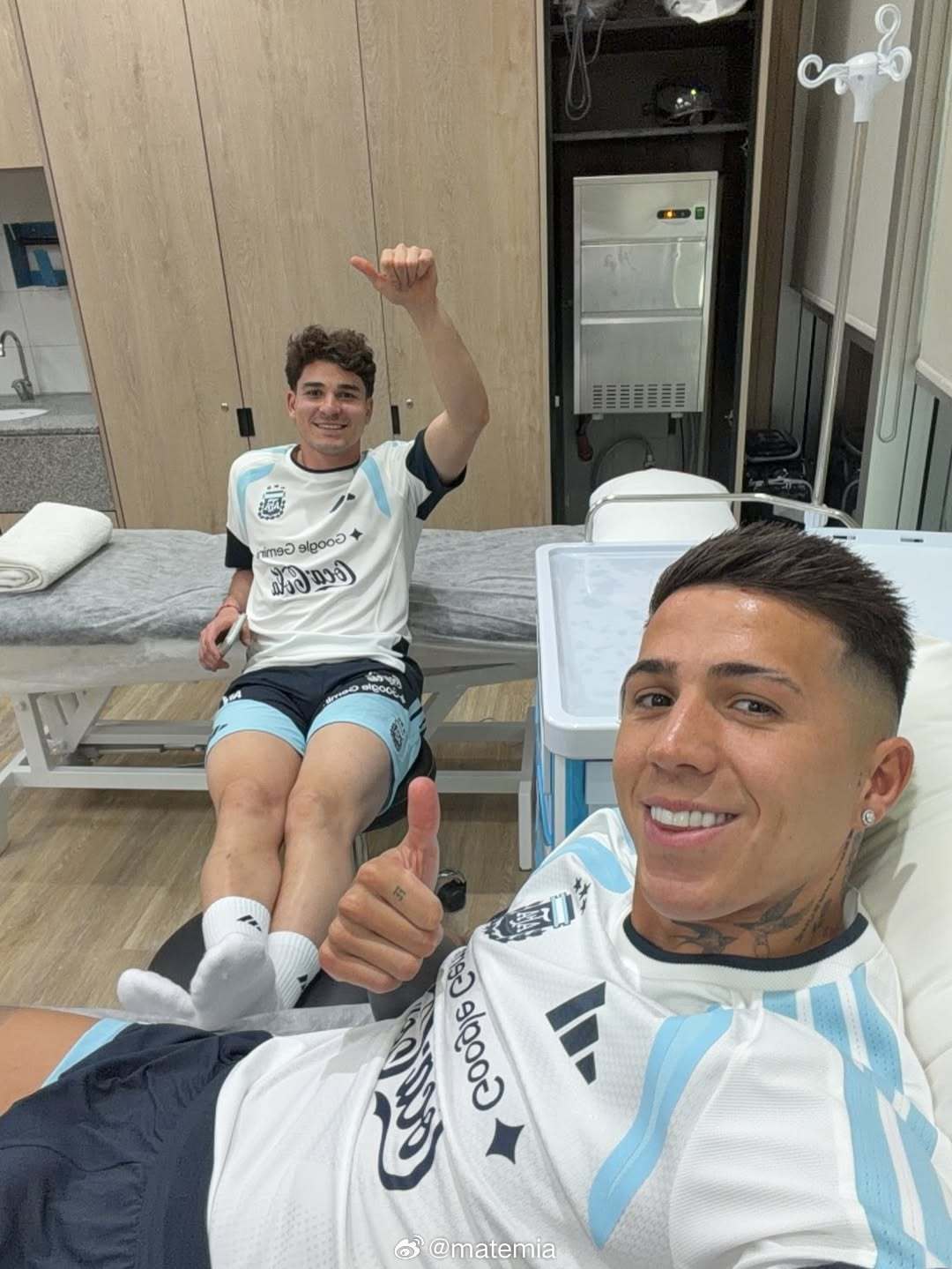 回到国家队备战世界杯,切尔西恩佐费尔南德斯更新IG 🎥 图二和好友小蜘蛛阿尔瓦雷斯,图三和梅西、图四和帕拉西奥斯~阿根廷vs毛里塔尼亚2026世界杯