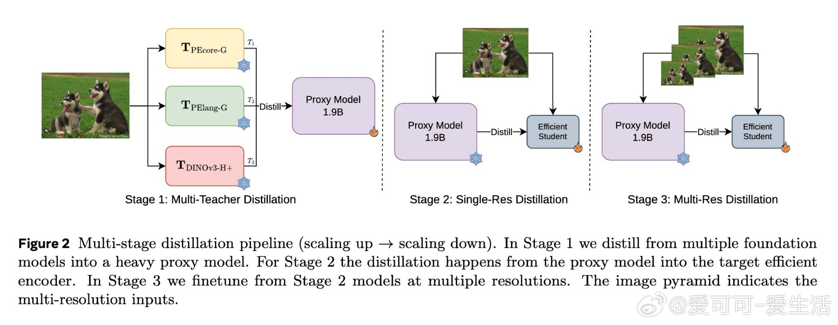 在边缘设备视觉感知领域,单一编码器始终困于"专才陷阱":擅长语义理解的CLIP系模型空间感知差,擅长密集预测的DINO系模型语言对齐弱。直接将多个专家教师压缩进轻量编码器时,86M参数的学生根本无法同时容纳来自多个异构特征空间的表示,导致知识相互干扰。