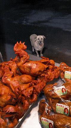 夜幕降临,一只饥肠辘辘的流浪狗来到一处卖炸鸡的摊位前,对着摊主小伙子拜了又拜,想