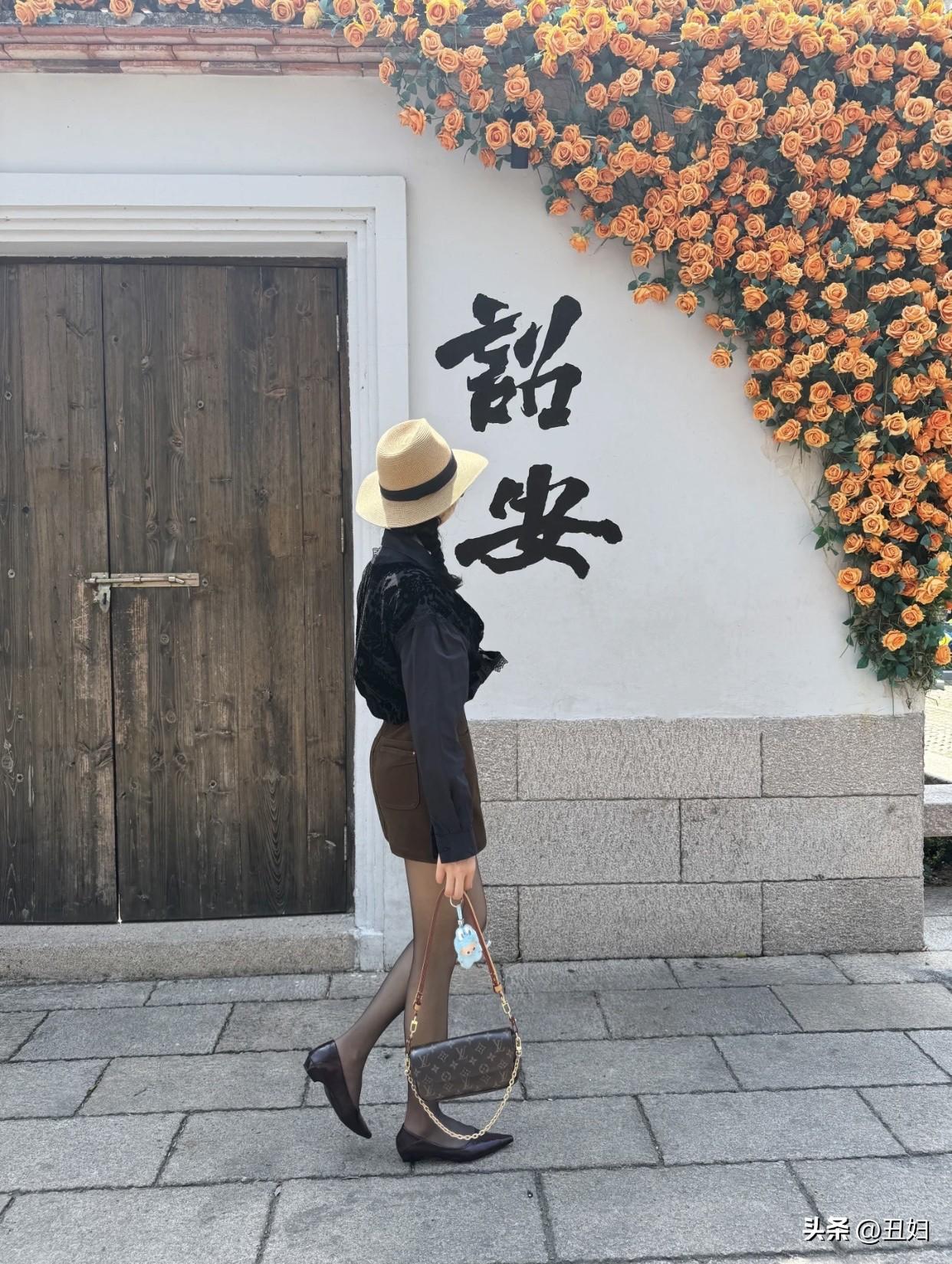 甜美小仙女的穿搭复古风穿搭,漫步在花海与古朴木门之间,感受岁月静好。