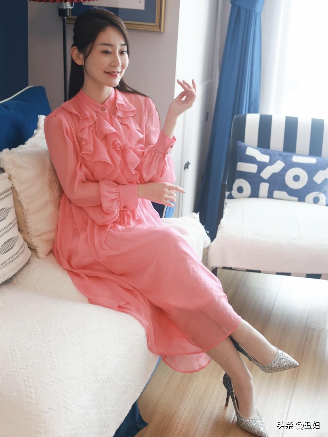 怎样穿搭知性又显身材?温柔甜美的粉红色连衣裙,散发着优雅与自信的气息。