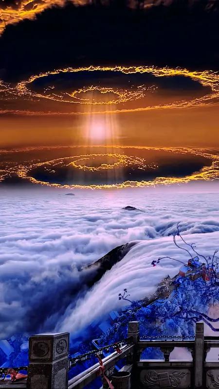 上联:云开世外三千界;下联你请月照人间九重山。