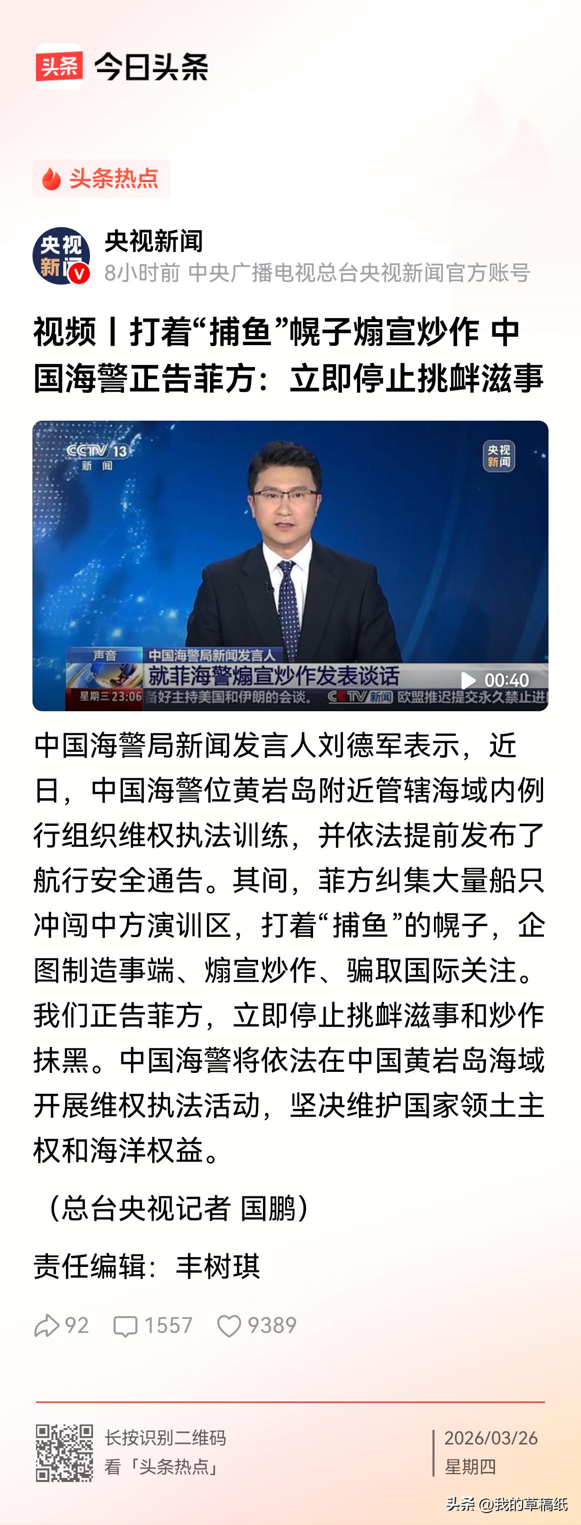 小小菲律宾,三番五次骚扰我国渔民、侵犯我国海域,一次次得寸进尺,把我们的克制当成软弱可欺。中国从不称霸,但绝不是任人拿捏的老好人,自家海域和渔民安全,半点都不能让! 菲律宾又在南海搞事!打着捕鱼幌子,纠集船只硬闯我方海域,摆拍炒作、恶意挑衅,把我国领土当成自家后花园,实在嚣张至极。 中国海警已正告菲方立即停手,我们仁至义尽,绝非无底线退让。再肆意挑衅、不断滋事,必将付出应有的代价!国家主权和渔民安全,我们寸土不让,该出手时绝不会手软! 菲律宾海局势 菲海警船想碰瓷 南海