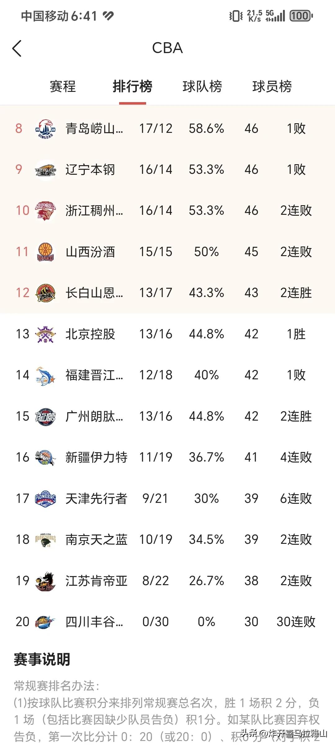 不看排名不知道一看吓一跳,原来辽宁男篮和吉林队的比赛,这是在人情世故啊! 吉林队主场82-75战胜了辽宁男篮,赛后大家以为辽宁队轻敌了,没有把小兄弟吉林队放在眼里,而且这场比赛乌戈教练的用人比较怪异。 张陈治锋从来都没有首发过,这场比赛居然首发了,他一首发辽宁队开局就被吉林队打成0-7。 末节从来没有使用过的双塔战术——莫兰德张陈治锋,这场比赛使用了! 吉林队双外援辽宁队就用单外援,吉林队单外援辽宁队就用全华班。 赵继伟头一次这么上头,全场14投1中,不进球还这么瞎扔浪费机会,出手次数比任何一个外援都多,教练还不说他。 种种迹象证明辽宁队本场比赛太反常了,赛后一看积分算明白了,辽宁队输赢都是排名第九,即使和青岛稠州积分相同,因为辽宁队对阵这两个球队胜负关系差。 而吉林队就不一样了,赢了就进前12名,季后赛附加赛,输了就排名第13或者14名。 学问都在这场排名上了,让吉林队能够进入季后赛。要知道吉林队和辽宁队关系是CBA里面最铁的了,互相借球员,你中有我,我中有你。 不得不说辽宁队演的挺真实的,帮助吉林老铁也尝尝季后赛的味道,关键时刻拉兄弟一把,你好我好大家好[机智][机智][机智]