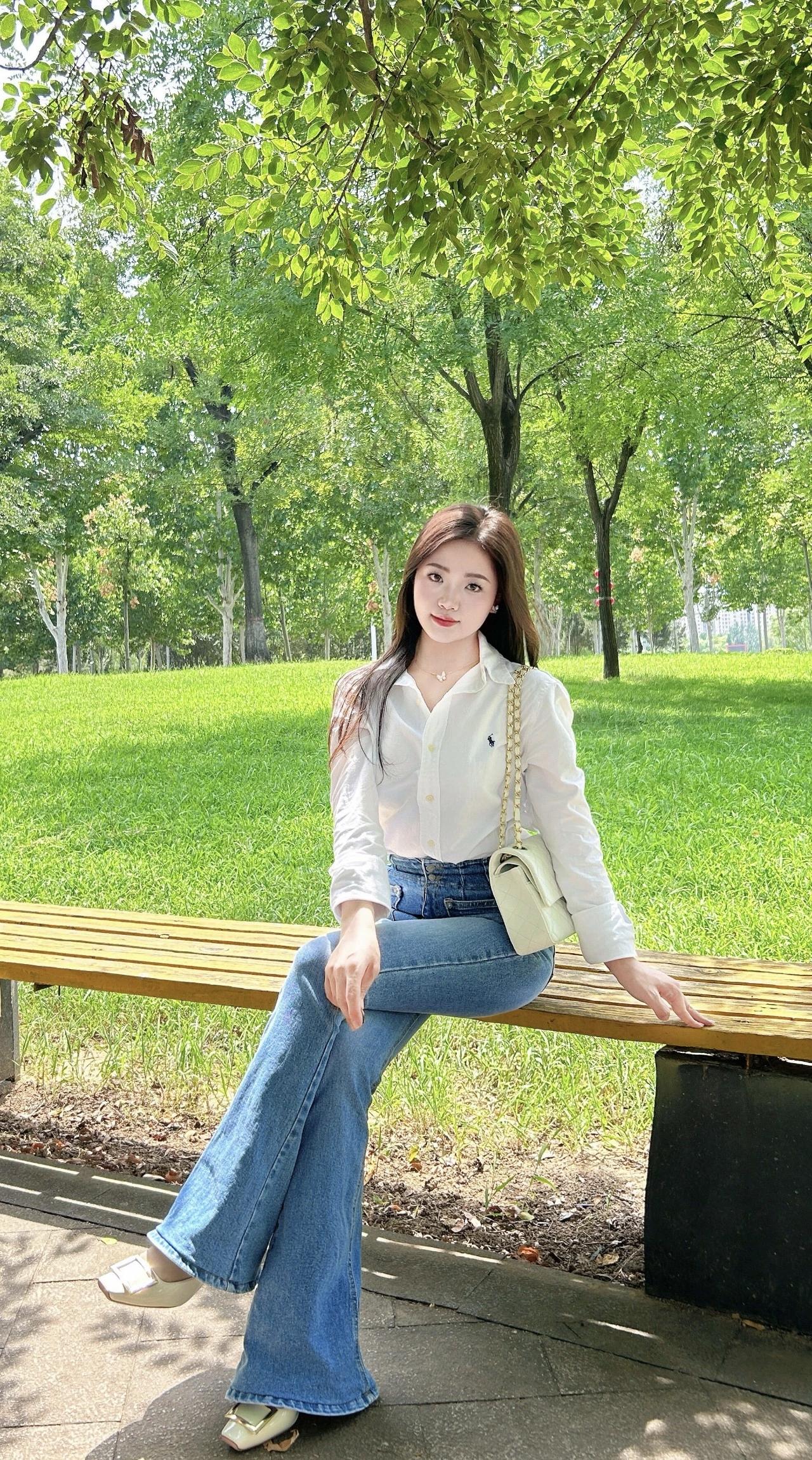 见过哪些令人心动的街拍照片?肤白貌美气质佳,还是最爱牛仔裤穿搭风格美女街拍照 甜