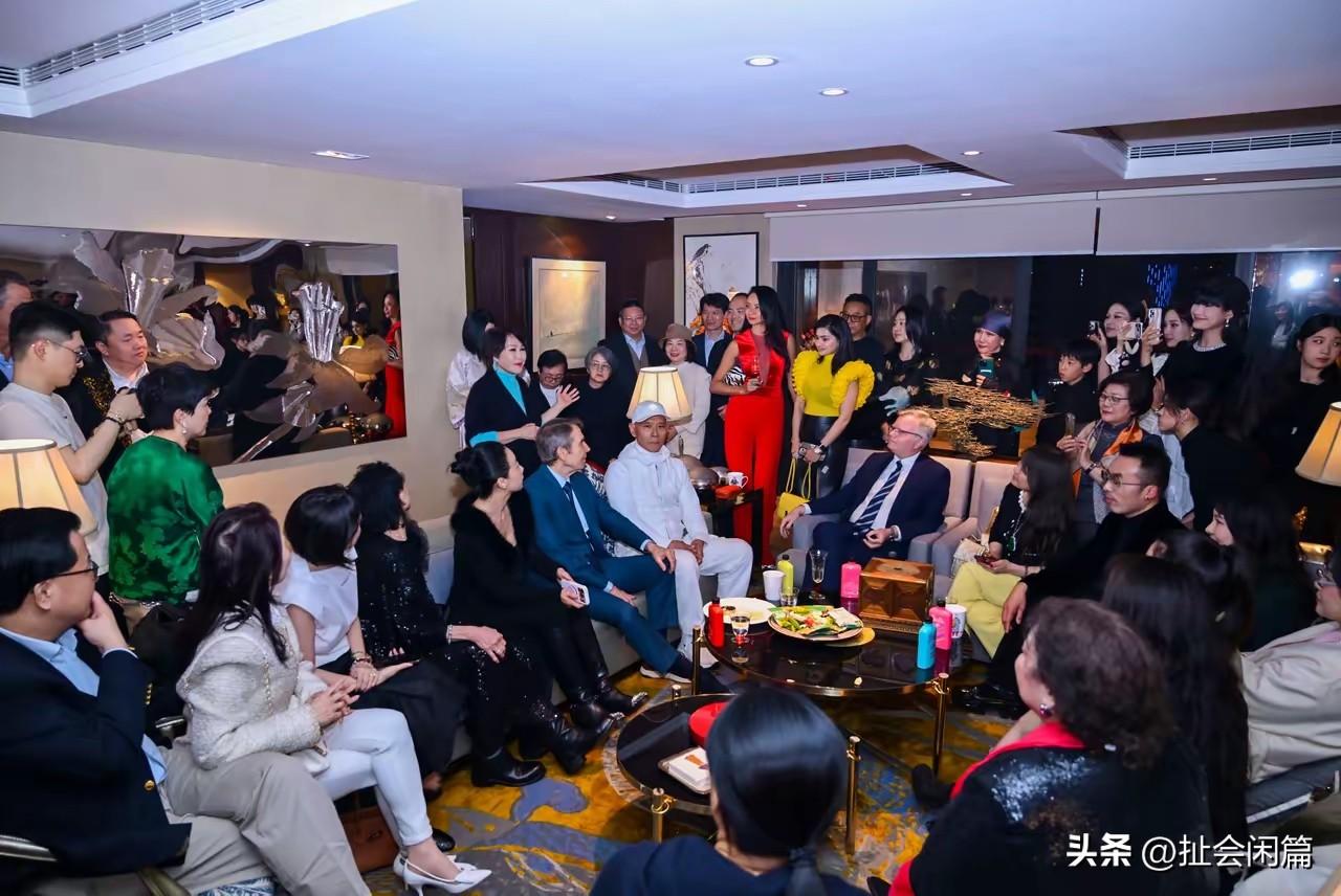 靳羽西在上海寓所举办家宴,宴请著名的雕塑艺术家杰夫·昆斯及好朋友们,家里边挤满了穿着盛装的男男女女,其中就有黄奕的前夫姜凯夫妇。 只见姜凯穿着金色豹纹领边的西装,妻子拎着橙黄色的名贵包包,盛装出席了这个晚宴。 姜凯作为著名的对冲基金大老板,和靳羽西是非常好的朋友。咱就说不知道这个寓所有多大?能同时容纳几十个人。Party和聚餐。