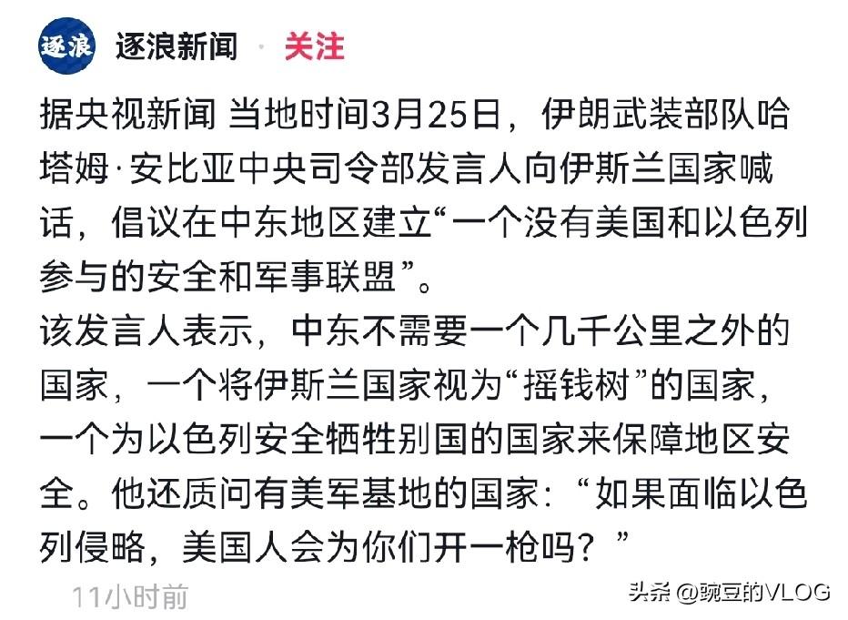 感觉伊朗受了高人指点,这个问题提的非常好也非常诛心…[捂脸] 伊朗向中东国家提了一个问题,问有美国驻军的中东国家如果他们也面临以色列的侵略,美国会为他们作战吗。伊朗并呼吁中东国家团结起来,在中东建立一个没有美国和以色列参与的安全和军事联盟。 伊朗向中东国家提了一个诛心问题,事情明摆着,以色列在美国心中的重要性超过中东国家的总和,如果以色列也侵略这些中东国家美国连谴责都不会甚至可能还会参与一脚分杯羹。 正是因为这样,正是因为中东国家也心知肚明。正是因为这样,连以前常跟美国一起行动的法英这次也没搅和,虽然也有他们国力不济的原因,但伊朗暂时避免了被群起而攻之的局面。 不过封锁霍尔木兹海峡会形成一个其他国家参与美伊战争的超临界点,伊朗要是把握不好时机… 朋友们,你们对此事怎么看? 欢迎大家在评论区探讨,留言…[送心]