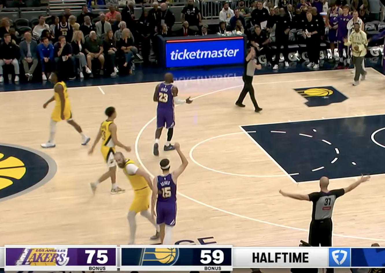 半场结束,湖人75-59步行者,点评一下吧。湖人vs步行者