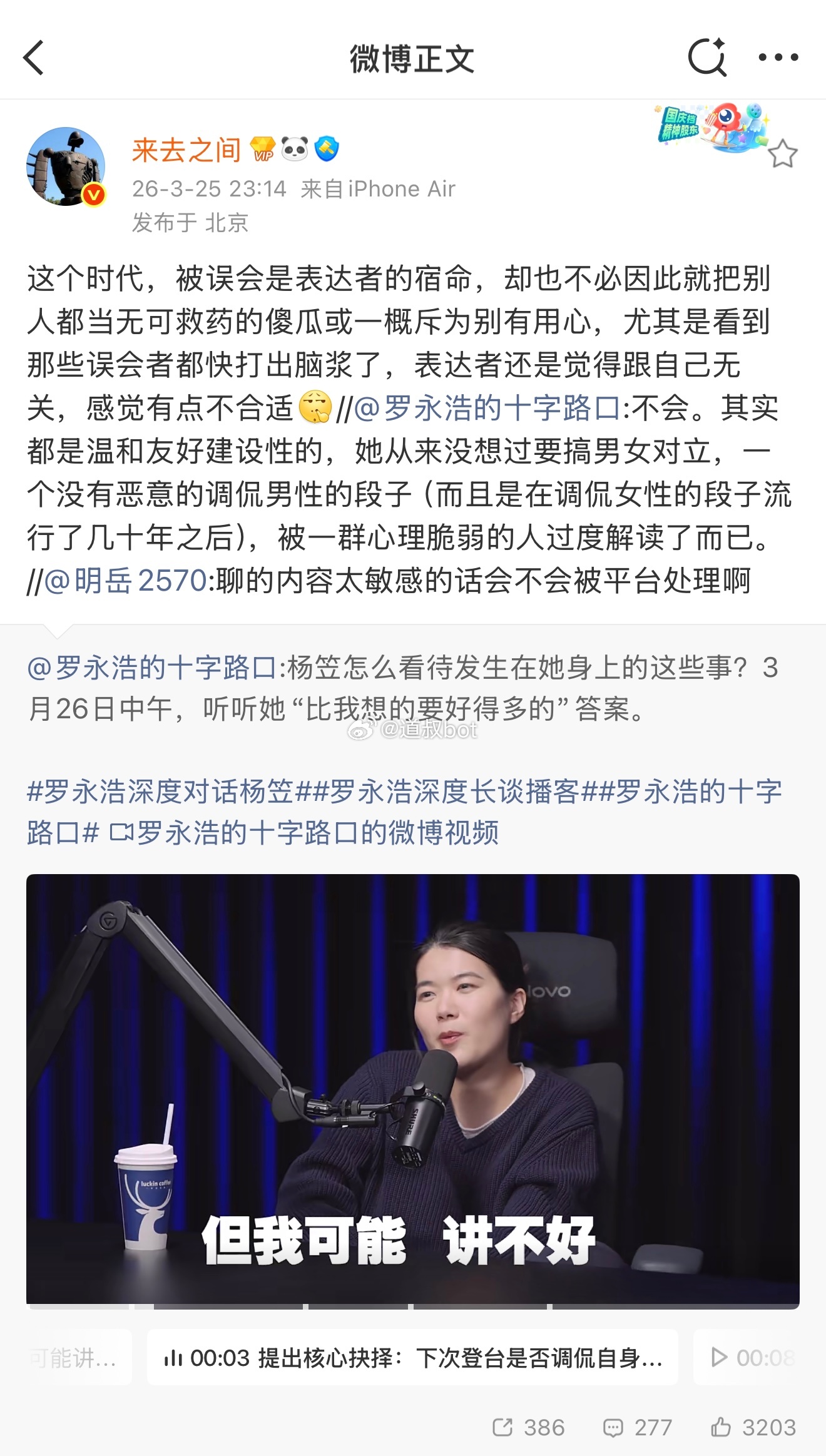 老罗是比较懂得舆论流量的,比如请杨笠。怼也是一种流量,一种关注。互怼更是。