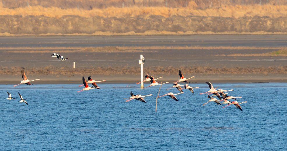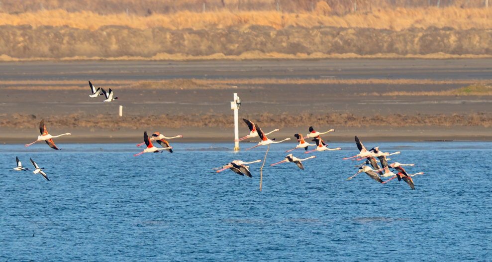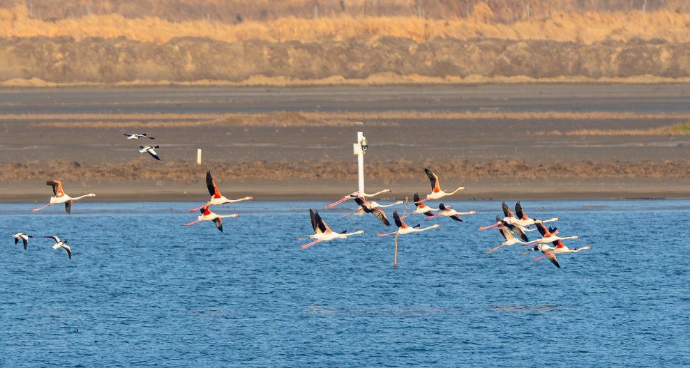 2026我的动物朋友 赴一场天际粉红之约💕火烈鸟舒展双翅掠过湛蓝水面恍若202