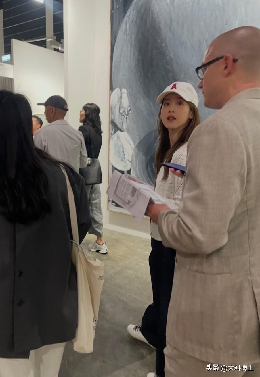 几乎素颜的她皮肤状态在线,眉眼舒展,笑容自然,站在艺术展人群中仿佛宛如当年在教室喝奶茶的妹妹一样。