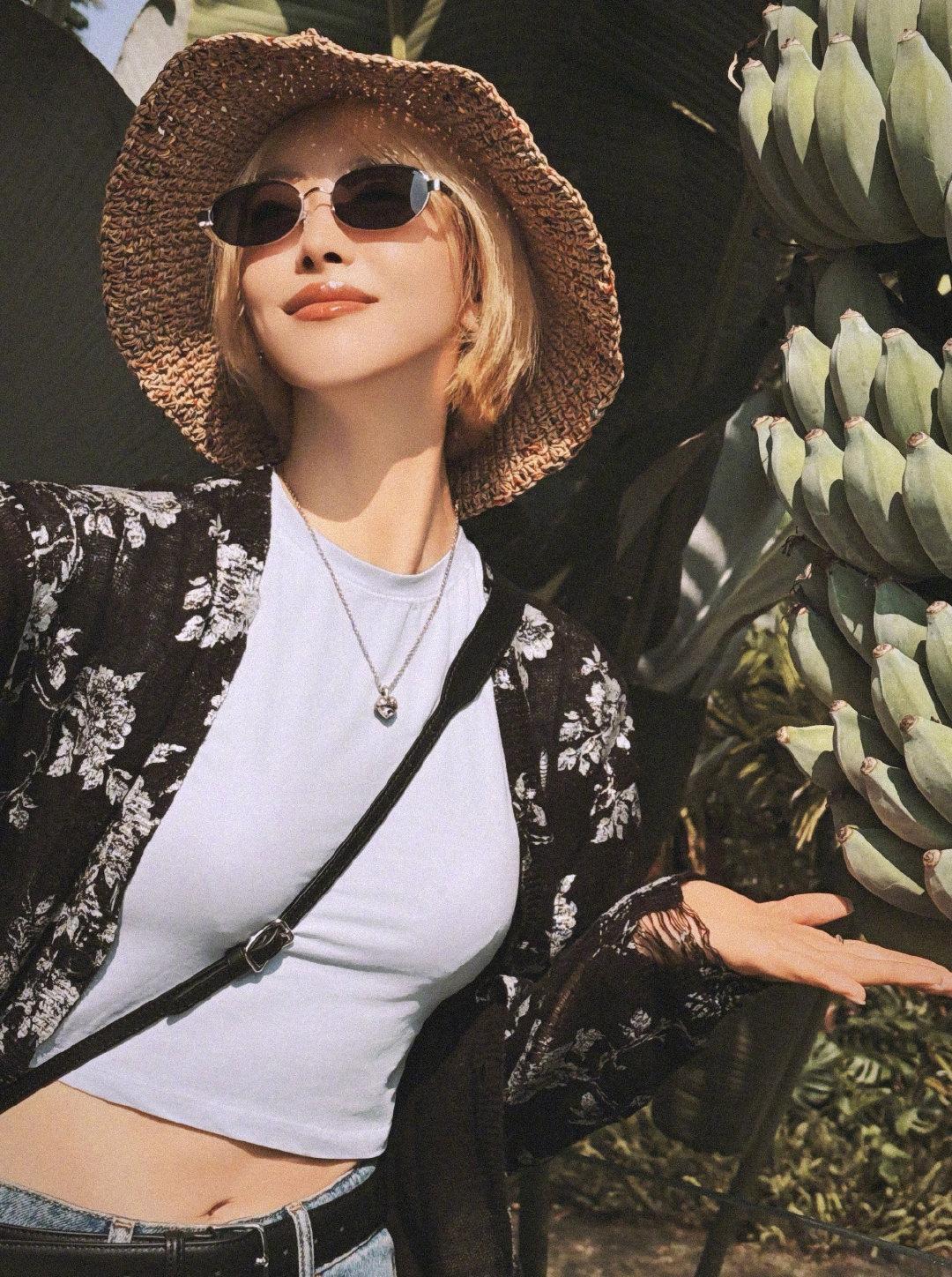 宋茜西双版纳旅行照美出圈,露腰短T搭配印花开衫与牛仔裙,时髦文艺又性感,小金毛与墨镜更添魅力,每张照片都像时尚大片!