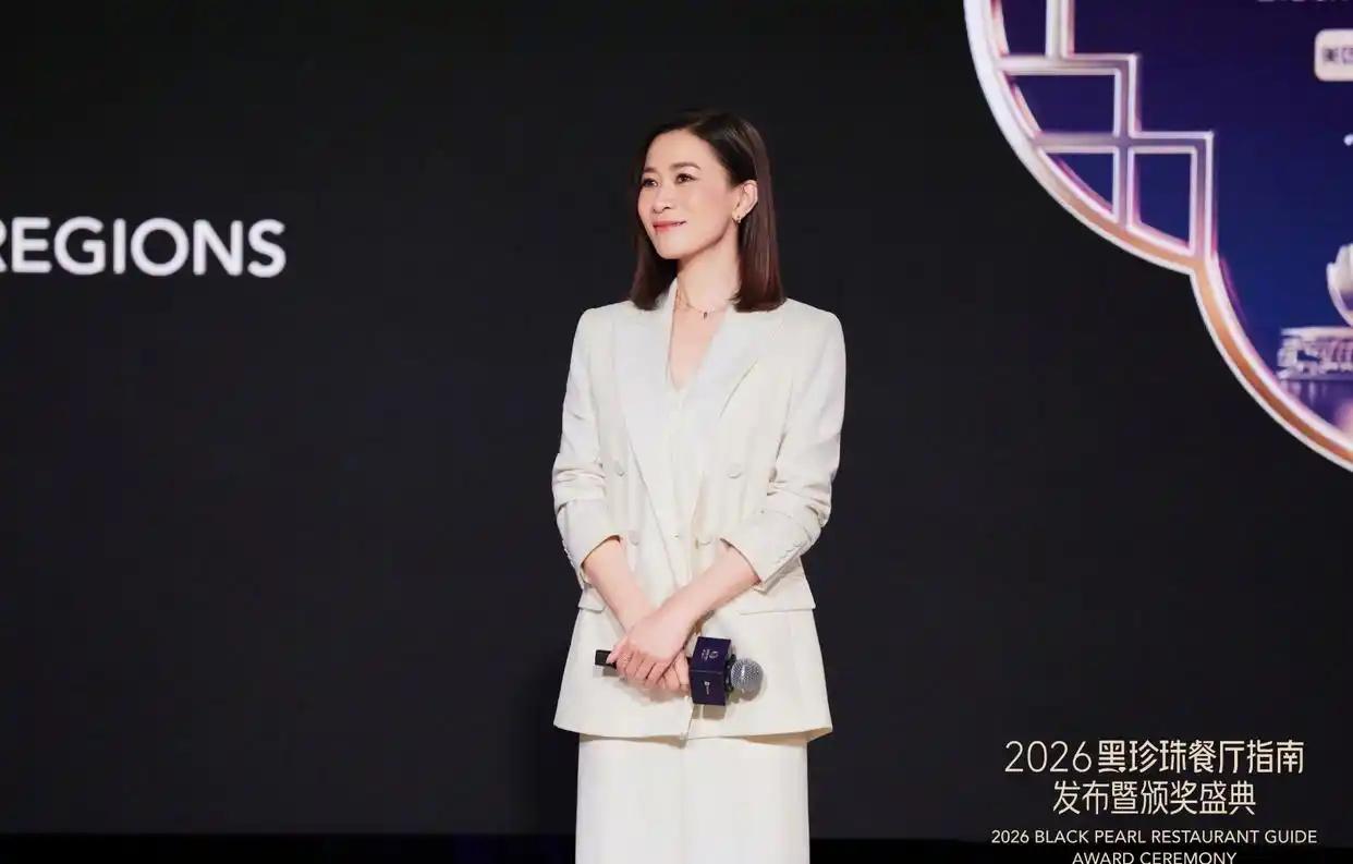 佘诗曼,今天在个人账号晒出了自己参加黑珍珠餐厅指南盛典活动的穿搭,白色西装搭配白