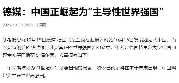 德国点名批评咱们, 德国媒体表示:中国正在将自己打造成世界头号“强国”,这已经严重威胁到了世界的和平。 说白了,这不是中国真的威胁了谁,而是有些国家习惯了过去的世界格局,见不得别人发展快,就拿“威胁和平”当借口,给自己的焦虑找个出口。 先看看最实际的经济账,德国跟中国的联系早就深到拆不开了。2025年中德货物贸易额都冲到1.51万亿元人民币了,还增长了5.2%,中国重返德国最大贸易伙伴国,德国也是中国在欧洲的头号贸易伙伴。 德国的汽车出口有32%都靠中国市场,机械制造是28%,化工产品也有21%,2024年对华出口就贡献了德国GDP的1.8%,能源危机后中国市场更是成了他们经济复苏的关键。巴斯夫这样的德国巨头,还专门跟中国稀土集团搞合资项目,保障自己的供应链安全。 一边赚着中国市场的钱,一边喊着中国是威胁,这本身就很矛盾。要是中国真的威胁和平,德国企业能这么放心地跟中国合作?贸易数据不会说谎,这种相互依存的关系,恰恰说明中国的发展带来的是机会,不是风险。 再说说军事层面,所谓“威胁”的说法更站不住脚。全球军费2024年都涨到2.718万亿美元了,美国一家就占了37%,军费是中国的3.2倍,2026财年还要涨到1.01万亿美元。而中国的军费占GDP比重,多年来一直维持在1.5%以内,远低于世界2.5%的平均水平,甚至比北约要求成员国2035年前达到的5%低太多。 更关键的是,中国的军费全用在本土防御上,而美国在全球有最密集的海外军事基地,还一个劲推动盟友加码军费。反观中国,自1990年以来,已经派出5万多人次参加联合国维和行动,是安理会常任理事国中派出维和人员最多的国家,还承担着第二大维和摊款。 35年来,中国维和官兵在20多个国家和地区排雷1.8万余枚,修复道路1.7万余公里,接诊病人25万余人次,有24名官兵为和平献出了生命。现在还有2200多人在8个任务区执行任务,组建的8000人规模维和待命部队,是联合国里数量最多、分队种类最齐全的。要是真的想威胁谁,会花这么大精力去做维和这种吃力不讨好的事? 中国这些年做的事,全是在给世界和平添砖加瓦。一带一路倡议搞了10年,从理念变成现实,成了受欢迎的国际合作平台,不是搞霸权扩张,而是帮着沿线国家修公路、建桥梁、通物流。 中国还设立了1.2亿美元的中国—联合国和平与发展基金,开展了112个合作项目,惠及100多个国家和地区。疫情期间,中国向150多个国家和地区提供了超过22亿剂疫苗,很多都是无偿援助。 在气候变化领域,中国的风电、太阳能发电装机容量早就超过18亿千瓦,稳居世界第一,为全球减排做出的贡献有目共睹。这些事哪一件是威胁和平的行为?恰恰相反,发展才是和平的根基,中国帮着更多国家发展起来,减少贫困和动荡,其实是从根源上维护和平。 那德国媒体为啥要这么说?核心还是认知上的偏差和刻板印象在作祟。今日俄罗斯电视台的副总编就说过,西方媒体对中国的报道全是强加的刻板印象,要么说中国靠廉价劳动力,要么炒作所谓的“技术窃取”,根本不看实际情况。 德国本身也存在严重的“认知赤字”,全德国学中文的学生还没学拉丁语的多,学术界大多依赖英美视角,对中国的了解少得可怜。加上西方媒体的新闻逻辑,总觉得“负面才是新闻”,中国的稳定发展在他们眼里反而成了“问题”,这种带着偏见的滤镜,自然会把正常的发展解读成“威胁”。 更深层的原因,是世界格局在变,有些国家的心态没跟上。过去几百年,西方一直占据主导地位,现在中国慢慢发展起来,打破了原来的平衡,他们就不适应了。于是就拿出“修昔底德陷阱”那套老逻辑,觉得新兴大国崛起必然要打仗。 可中国走的从来不是这条路,中国的发展是靠自己的努力,靠与世界的合作,而不是靠殖民、侵略。中国现在是140多个国家和地区的主要贸易伙伴,专利有效量超过美国,这些成就不是靠威胁谁得来的,而是靠实打实的创新和奋斗。 其实所谓“中国威胁论”,早就被事实打脸无数次了。中国的强大,从来不是为了称霸,而是为了让自己的人民过上好日子,同时也为世界提供更多机会。 看看那些跟中国合作的国家,大多都实现了共同发展,这就是最好的证明。德国媒体的说法,本质上是对中国发展的不了解,对世界格局变化的不适应。 随着中国继续走和平发展道路,随着更多国家亲身感受到中国发展带来的好处,这种片面的论调自然会失去市场。毕竟,和平与发展才是时代潮流,谁也挡不住,而中国的强大,恰恰是这股潮流中最稳定的力量之一。
