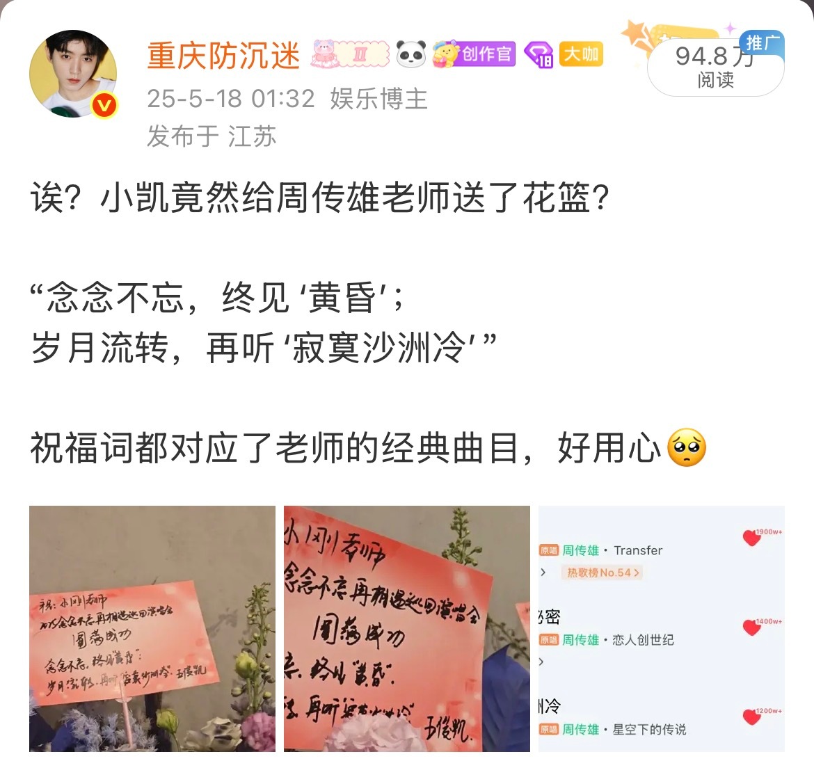 唐恬作的词,周传雄作的曲想起之前给晓刚老师送花王俊凯无人乐园邀请函