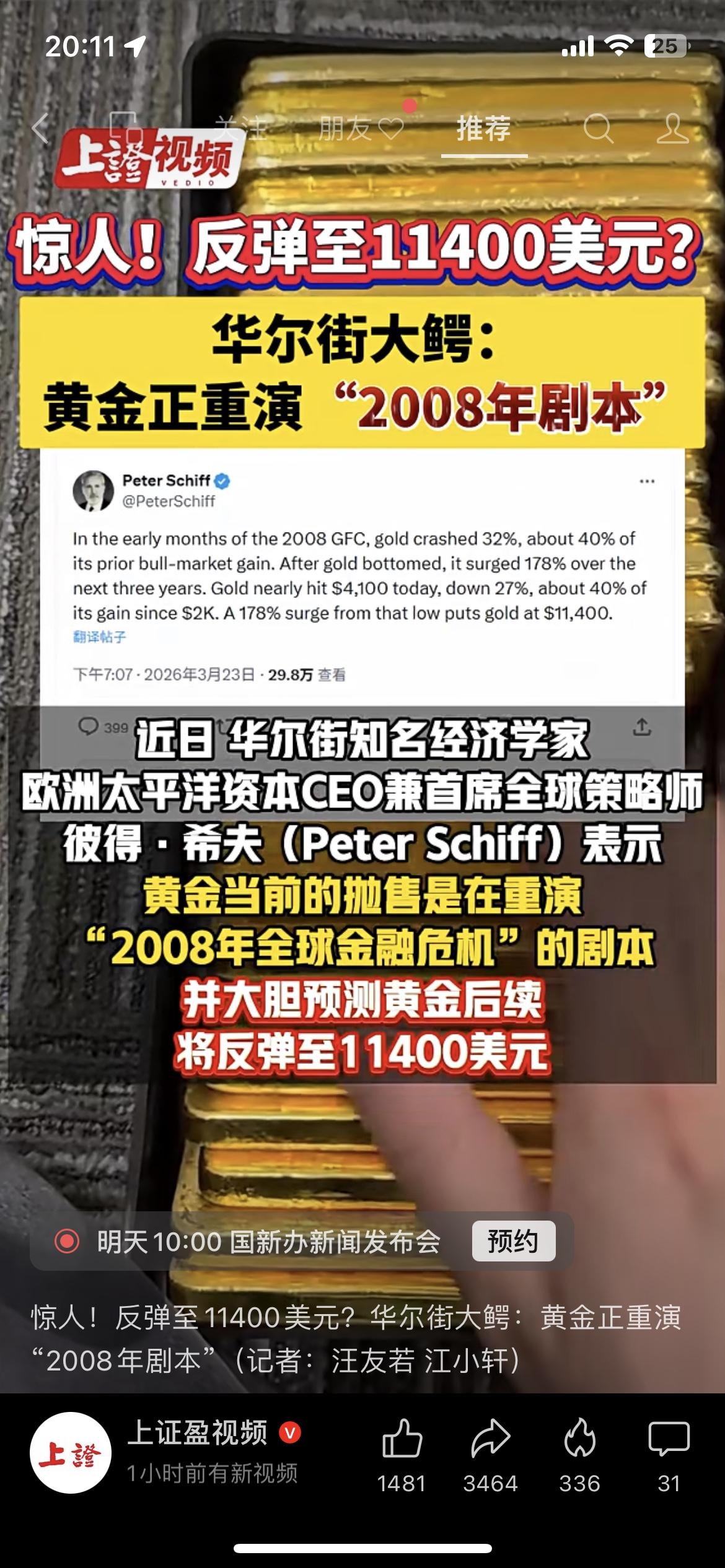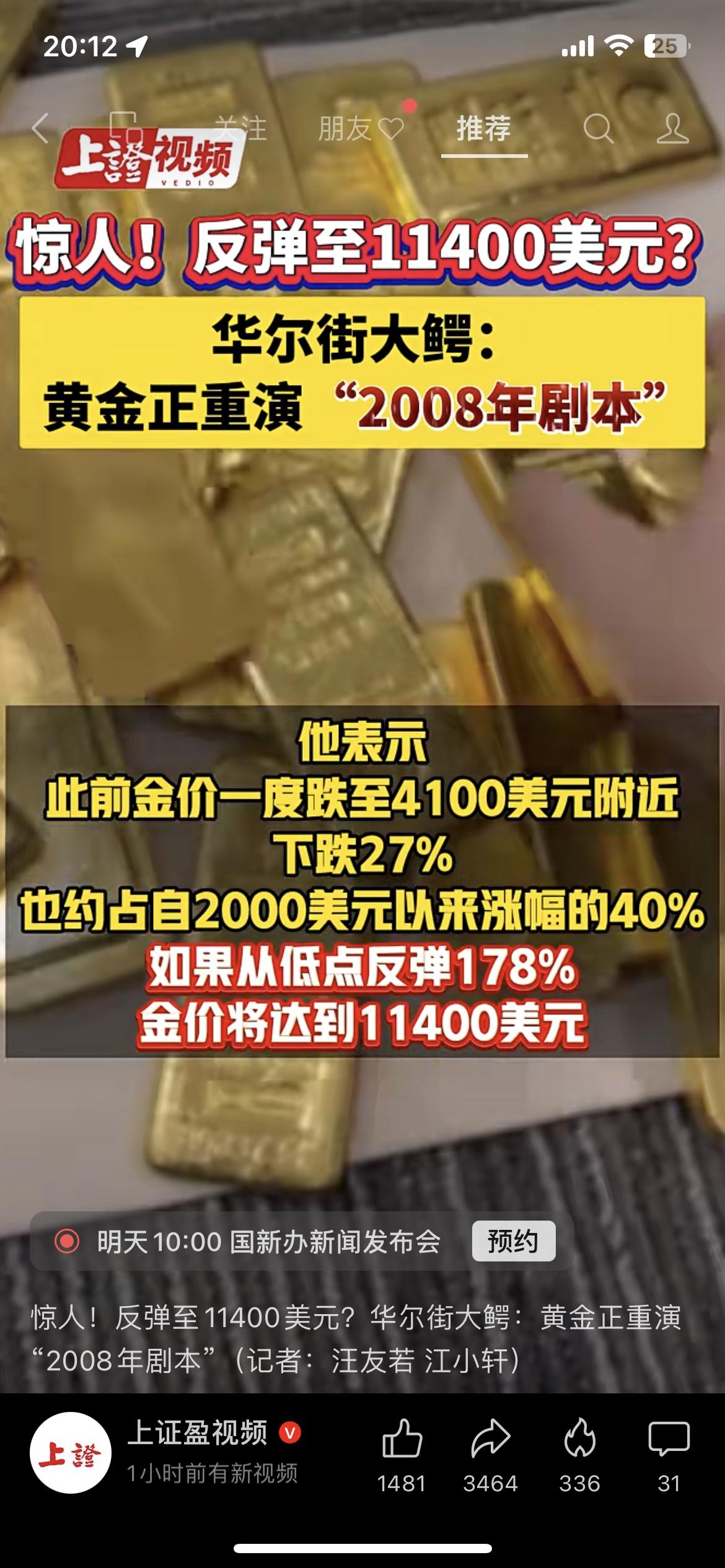黄金也能“生息”了?华尔街大鳄喊涨至11400美元,普通人能上车吗? 黄金市场彻底疯了!一边暴涨一边预警,到底该怎么投?🔥 中东局势缓和,现货黄金直线拉涨,华尔街大鳄直接喊出要涨到11400美元;另一边中行、建行、工行、民生银行集体发风险提示,说贵金属波动超正常范围,风险拉满! 更魔幻的是,黄金居然能“生息”了!有平台推数字化产品,让你拿住黄金既赚涨价又拿额外收益,彻底打破“只能放保险柜等涨价”的老观念,这是创新还是坑? 南开大学教授也提醒了,现在市场高波动、高不确定,普通人别瞎追高,优先选积存金、黄金ETF这种无杠杆方式长期配置,杠杆交易、海外小众产品千万别碰! 你手里有黄金吗?现在是加仓还是减仓?评论区说说! 黄金投资 贵金属 银行风险提示 中东局势