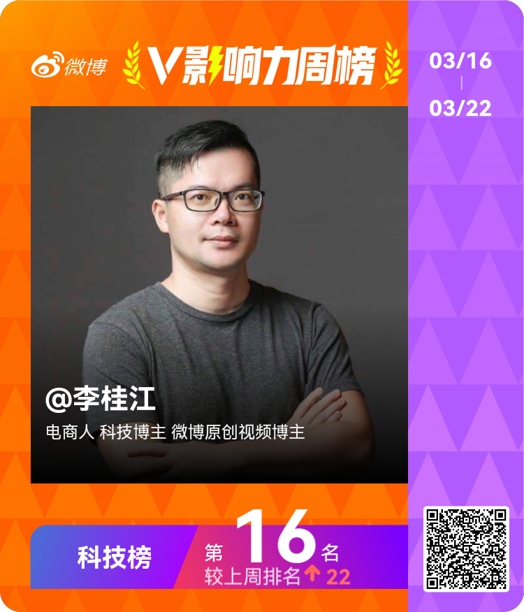 李桂江同学科技互联网大V榜,这次离来总最近,还直接超越了。可以可以。