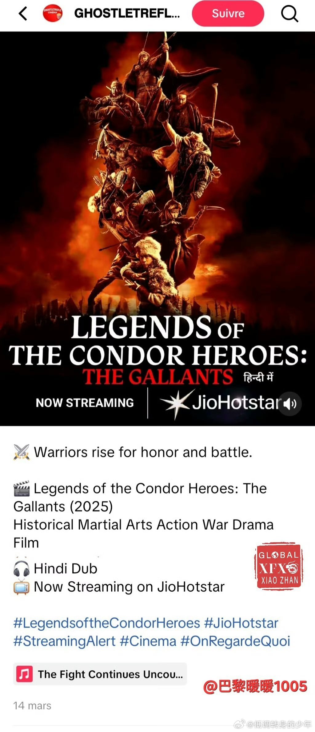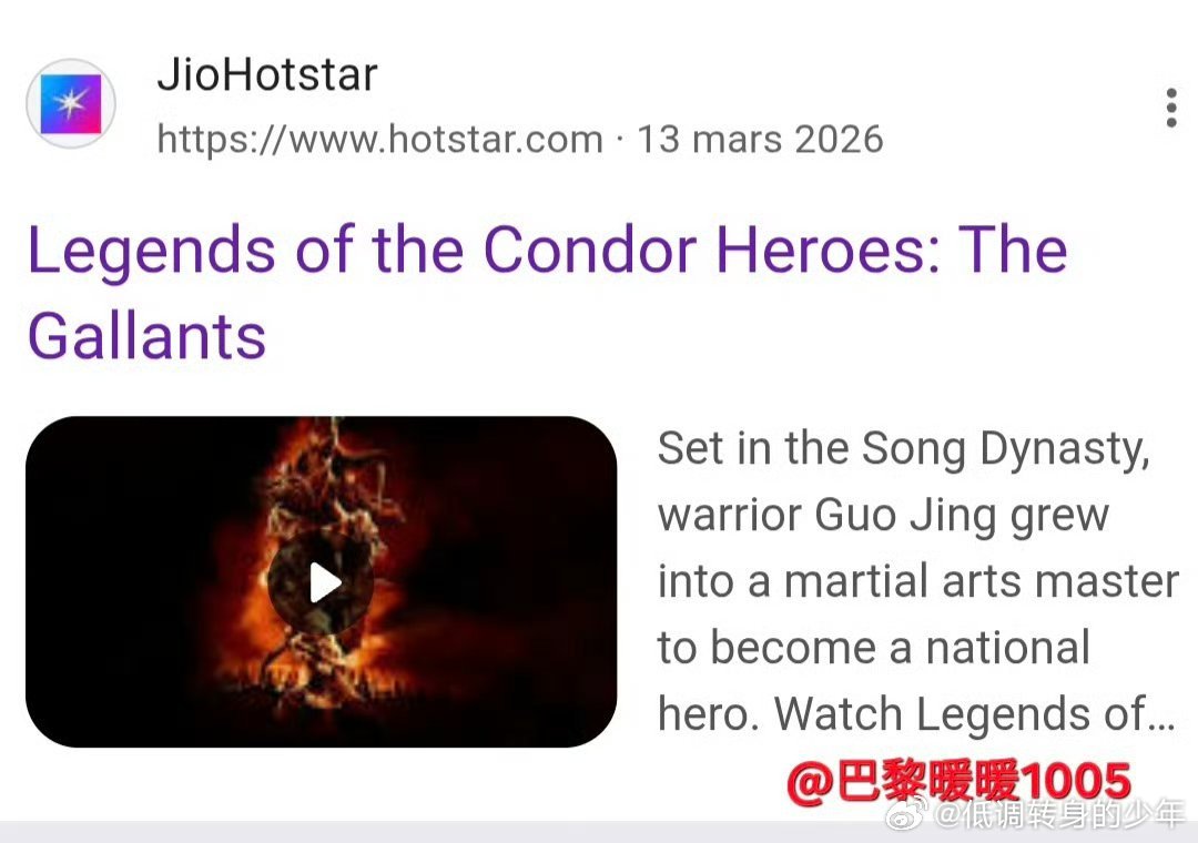 肖战电影射雕英雄传侠之大者🌏 3月14日,《射雕英雄传:侠之大者》正式登陆印度JioHotstar,并有印地语配音!在上映一年多后依然能敲开印度主流市场的大门,这就是武侠巨制《射雕英雄传侠之大者》的含金量。肖战电影射雕英雄传侠之大者