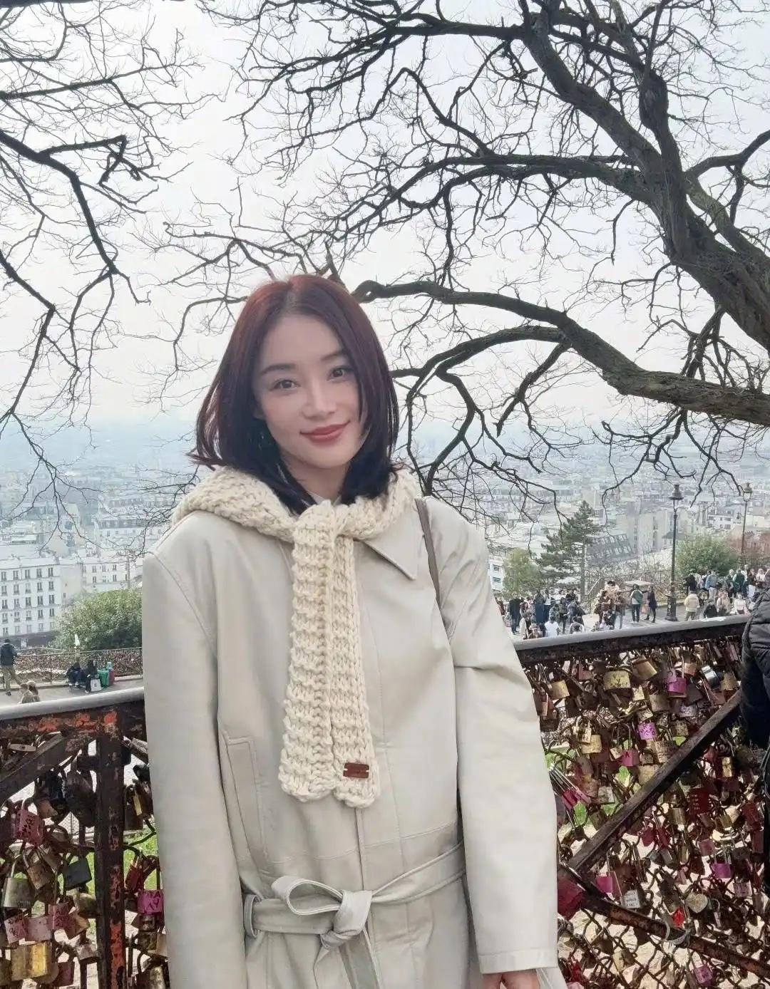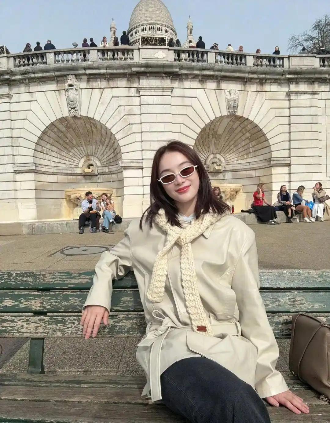 袁姗姗在个人账号晒出了一组穿风衣的美照,看照片中的风景,这是在巴黎呀……景美人美