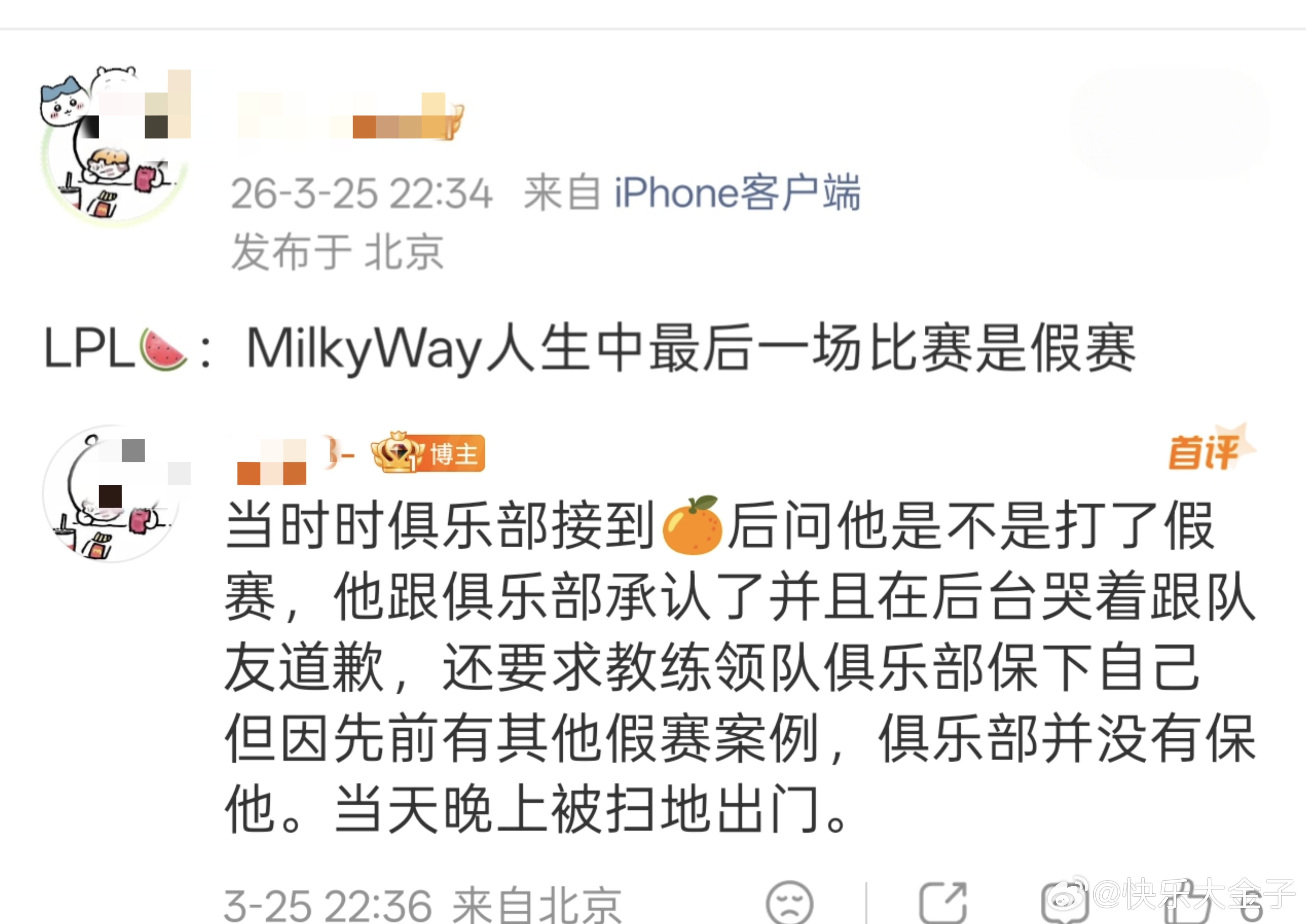 曝milkyway向队友承认假赛曝milkyway求FPX保他 另有milkyway私联的女粉回踩,milkyway8月11日被FPX扫地出门后,8月12-13日还跟粉丝提要求能不能无t睡被拒后又要求把第一次留给他