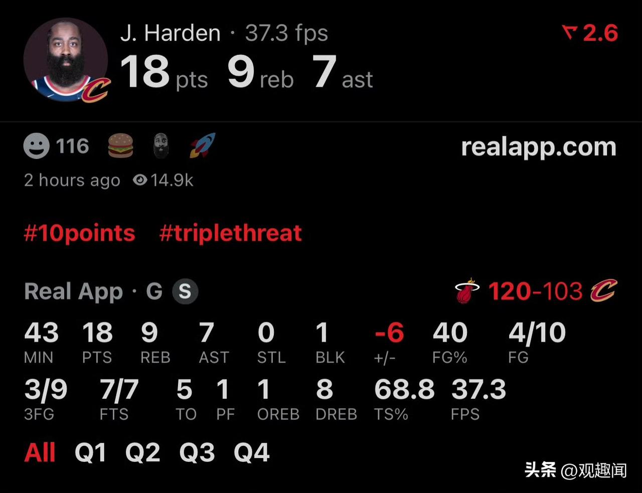 骑士不敌热火遗憾失利! 哈登今日背靠背出战43分钟, 拼下18分9篮板7助攻,几乎打满全场的他肉眼可见疲惫,进攻效率受体能影响有所下滑,末节运动战未能得分,只能靠罚球维持输出。 球队本就处于背靠背赛程,伤员名单持续拉长,轮换深度严重不足,教练组只能过度消耗核心,哈登也成了无奈的“场上劳模”。 后天骑士将再度主场迎战热火,这场复仇之战的难度拉满:球队刚遭遇大败,士气受挫,核心球员体能透支严重,内线依旧缺兵少将,面对热火全员齐整的团队打法,想要完成翻盘并不容易。