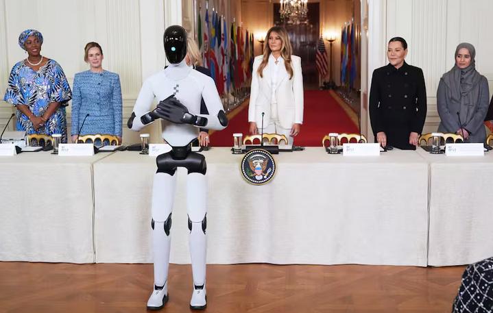 美第一夫人与人工智能机器人白宫同亮相 美国第一夫人梅拉尼娅发起了为期两天的“携手共创未来”全球联盟峰会,来自45个国家和28家顶尖科技企业的领导人聚集在一起,希望通过教育和科技赋能儿童。 夺人眼球的是,峰会最后一天,梅拉尼娅·特朗普在这个人工智能机器人的陪同下,从白宫走廊的另一端并排沿着红地毯走向会场。机器人还用十种语言在公众面前做了自我介绍“我是Figure 03,一个为美国制造的人形机器人,”“我很感激能参与这一历史性的运动,为孩子们提供技术和教育。” Figure 03是硅谷机器人公司Figure AI于去年发布的第三代人形机器人,具有更敏锐的感觉系统、更柔和的外观和更好的协调性,售价约为2.5万美元。