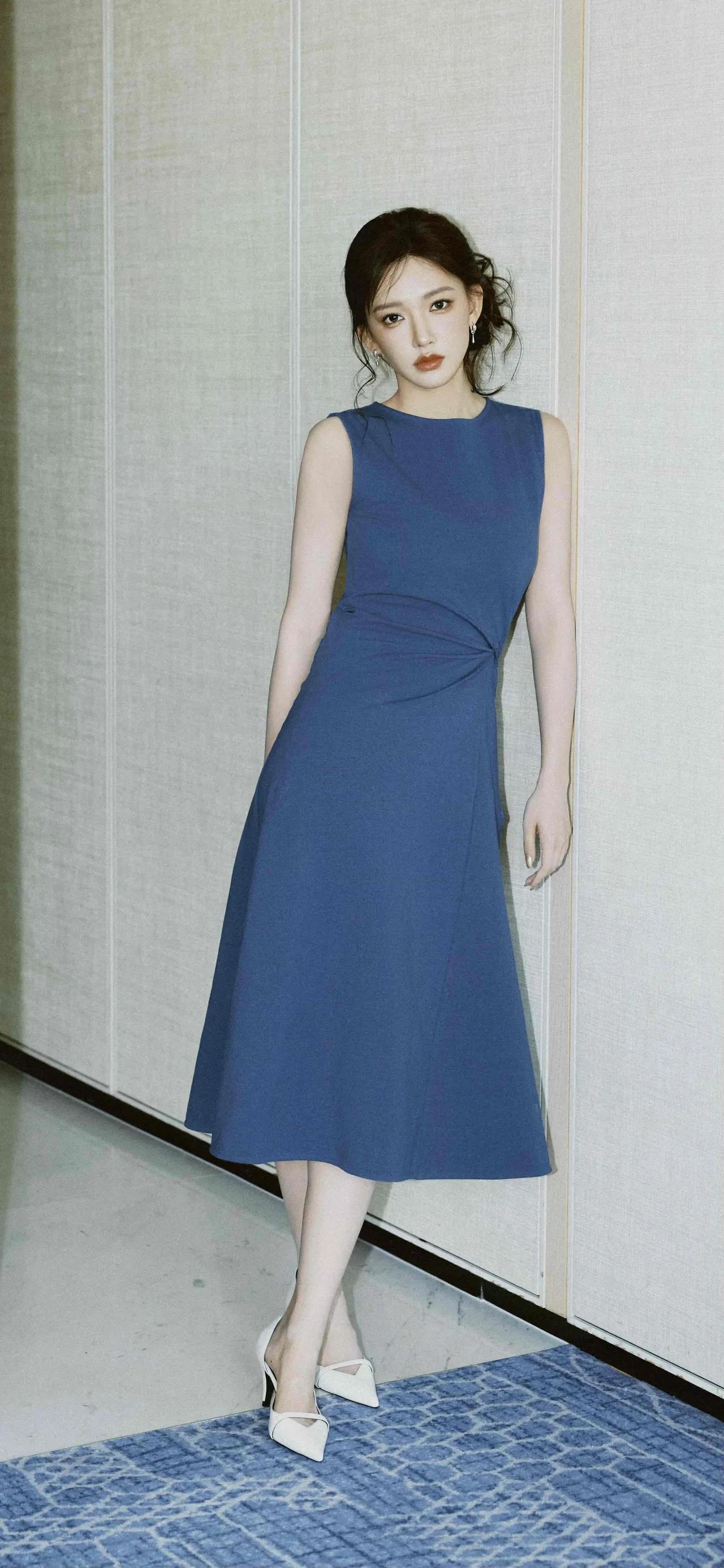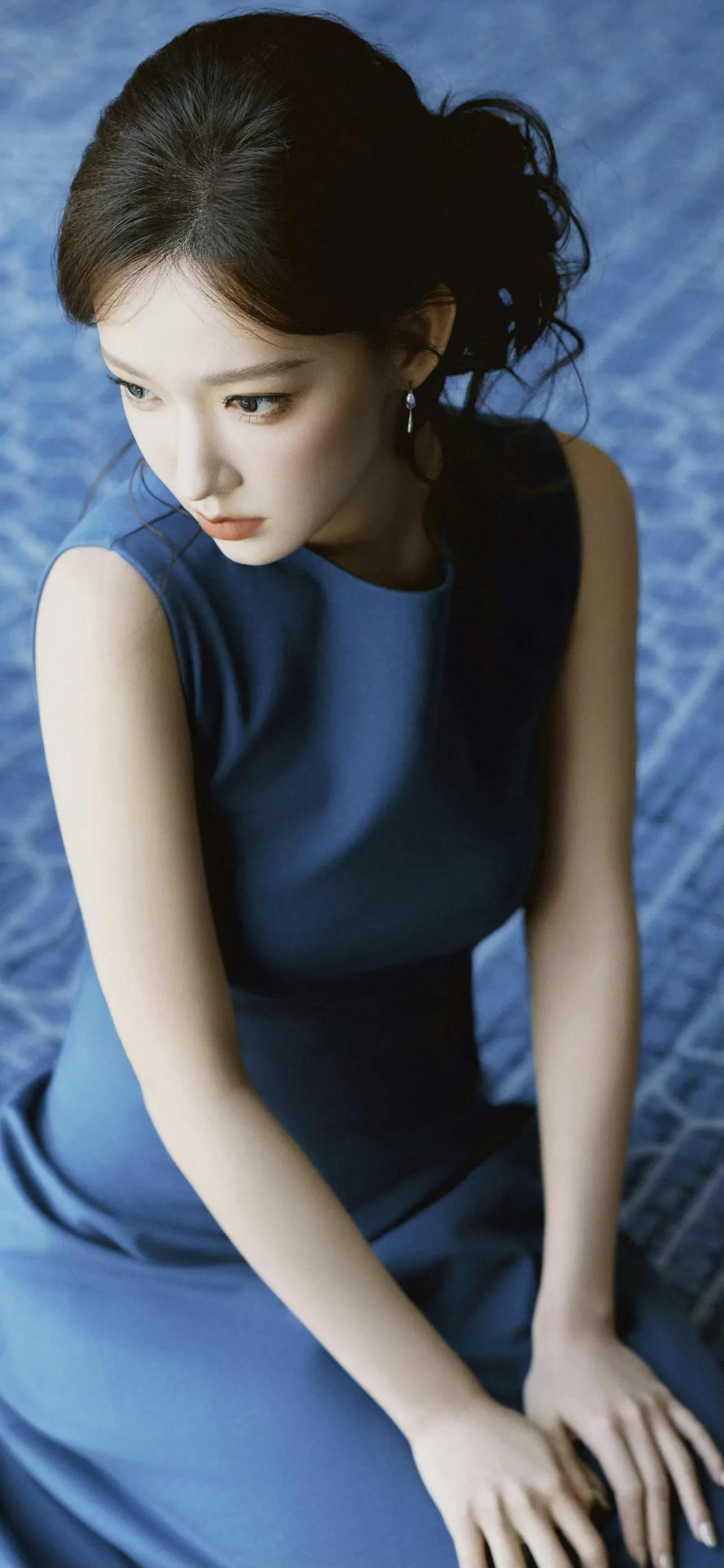 美女壁纸~程潇,藏在雾蓝里的温柔,是松弛感与精致感的恰好平衡